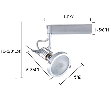 Q: What are the dimensions of the Jesco Lighting HMH901P38701S track head?A: The dimensions of the Jesco Lighting HMH901P38701S track head are 5”Ø (L) x 6-3/4” (W) x 10-5/8” EXT.