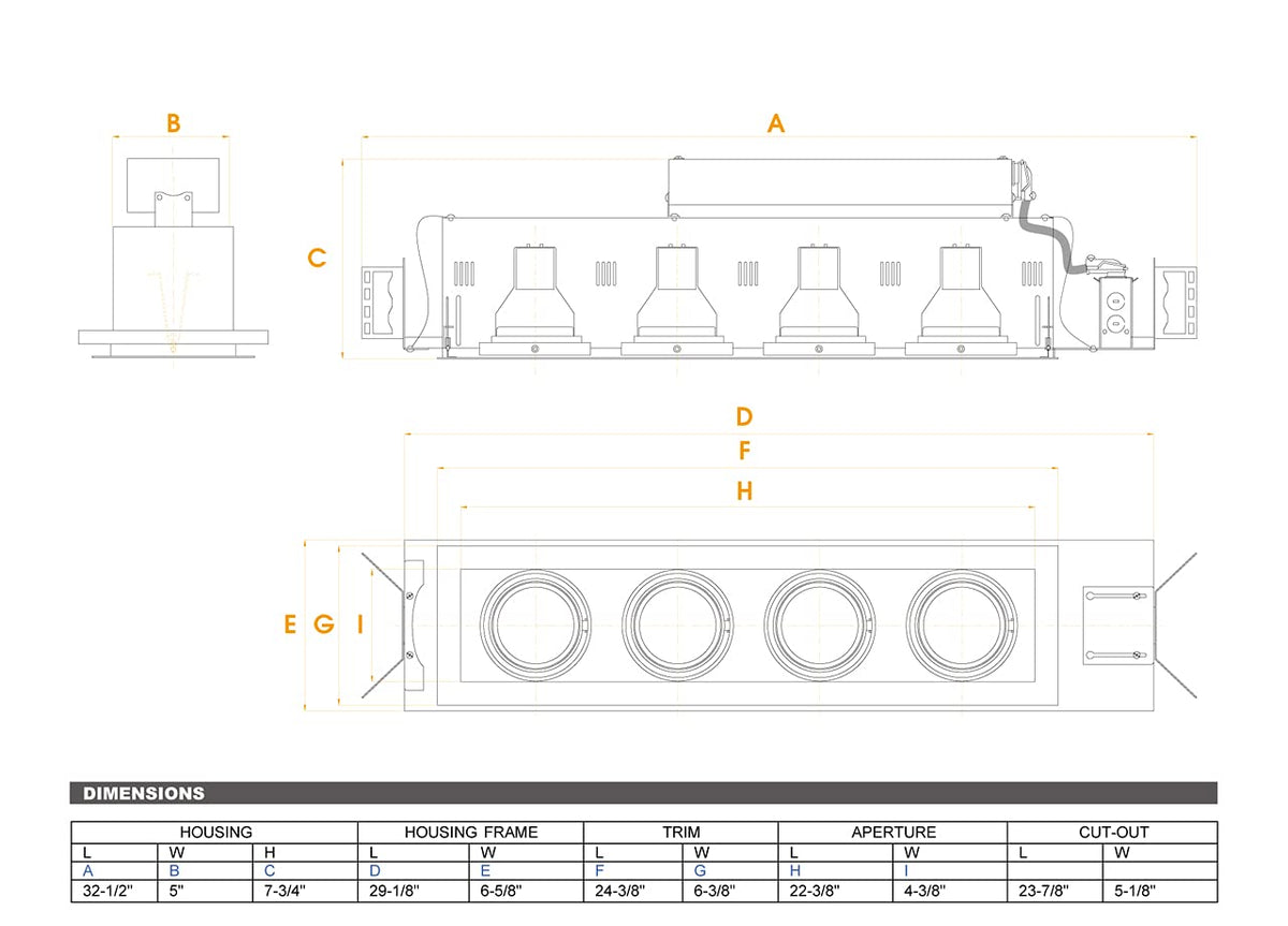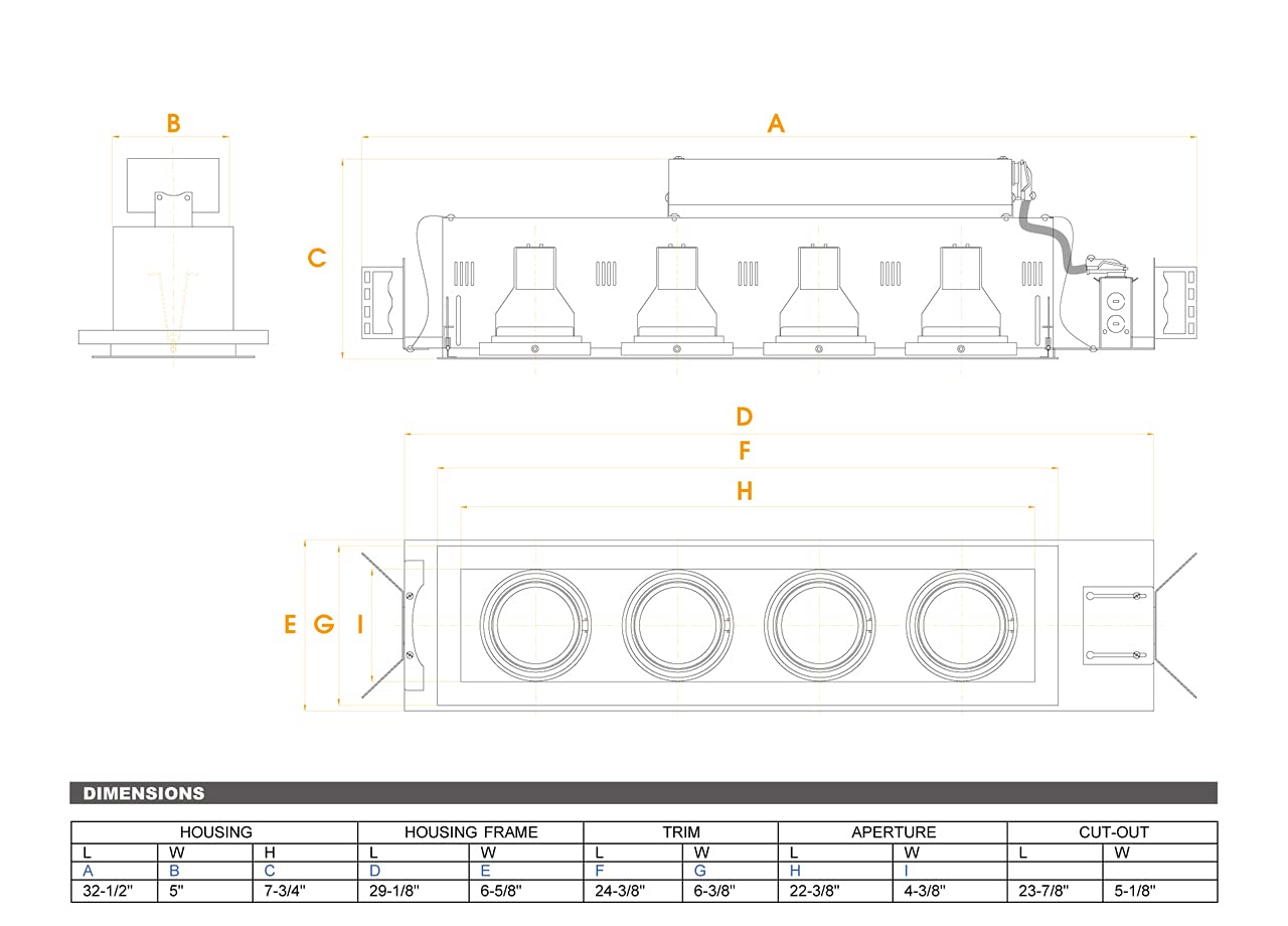 Q: What are the dimensions of the Jesco MGP20-4SB lighting fixture?A: The dimensions of the Jesco MGP20-4SB are 32-1/2 inches in length, 5 inches in width, and 7-3/4 inches in height, making it a compact choice for new construction lighting.