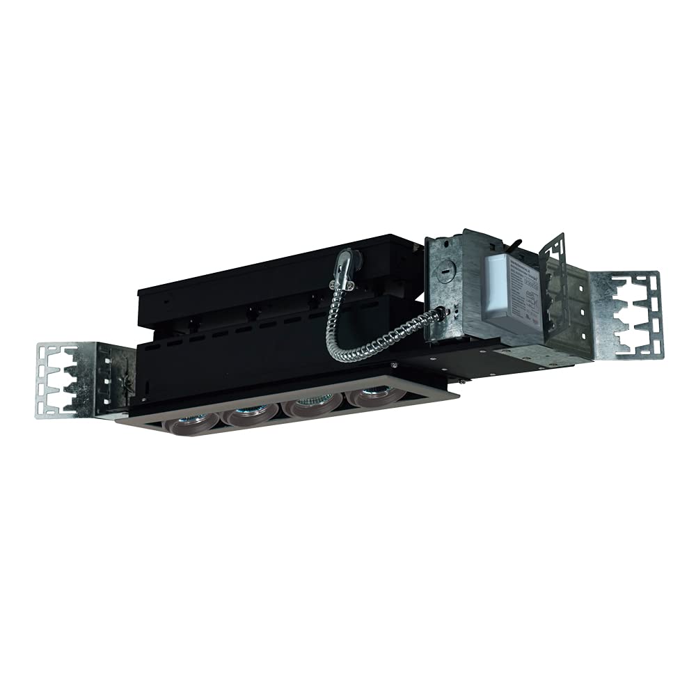 Jesco Lighting Mmgmh1639-4Ess Mini Modulinear Directional Lighting For New Construction, Metal Halide 39W Mr16 4-Light Linear, Black Interior With Silver Gimbal And Trim