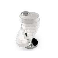Jesco 1-Light Table Lamp -DNA collection in Chrome. Table Lamp/Short Floor Lamp. DBA Series 658. Grok: 10 2705. Each of the 8 layers can be swiveled to any configuration. Bulb Base: (1) G9 120-Volt 40-Watt Included. ETL listed; hardwire; dry location. Each of its 8 layers can be swiveled to any configuration. Dimensions: 11-7/8-Inch Diameter to 17-3/4-Inch Diameter x 25-7/8-Inch Height.