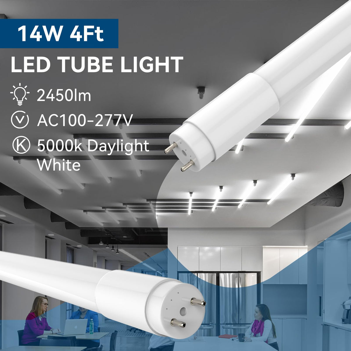 Jesled 20-Pack T8 Led Tube Lights 4Ft, 14W 2450Lm 5000K, Single Or Double End Powered, Plug And Play Or Ballast Bypass, Type A+B