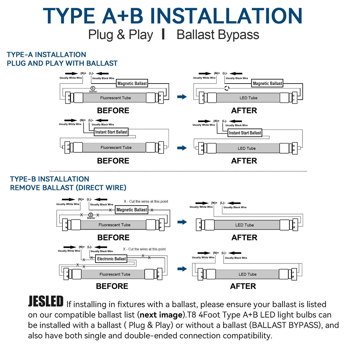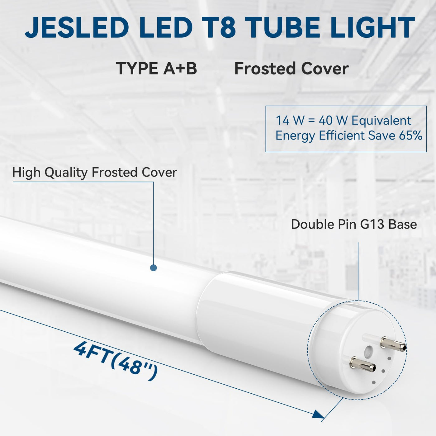Jesled 48Inch Led Bulbs Have A Service Life Of Over 50,000 Hours! Depending On Usage, These Led Tubes Can Last Up To 10 Years, Reducing Maintenance Costs And Tube Replacement Frequency. These Tubes Can Be Used In Warehouses, Kitchens, Offices, Hospitals, Schools, Corridors, Garages, Shops, Or Anywhere T8 Led Lighting Is Needed.