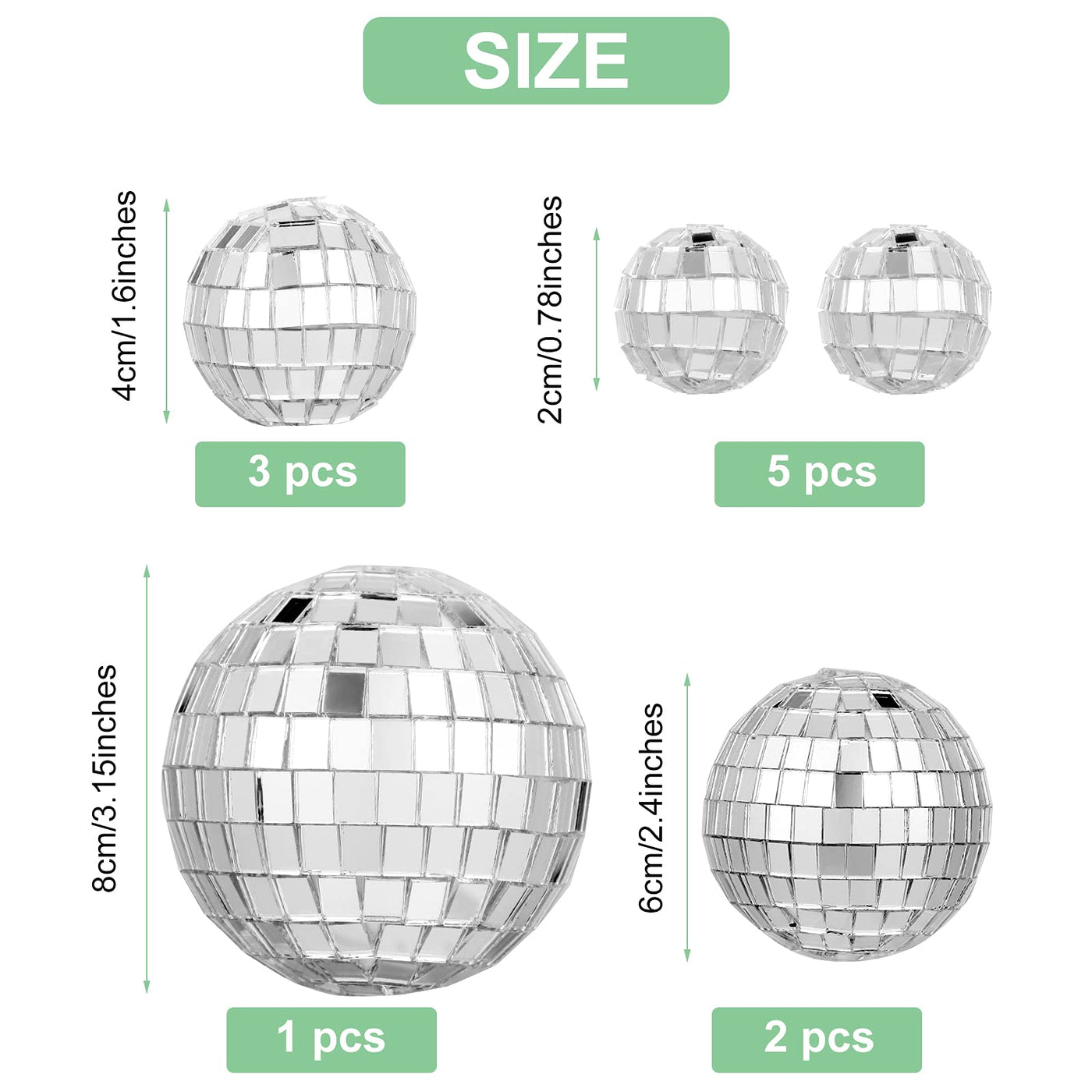 Features: Enhancing party's atmosphere: It will be a nice choice for you to pick these disco ball cake toppers, which can be applied as exquisite decorations for cakes, and you can design a party full of funny, lovely and magical things, enhancing the party's atmosphere. Multiple applications: There are 11 pieces of disco cake toppers in the package, the quantity is sufficient and suitable to decorate cakes on many occasions, such as weddings, birthday parties, festive celebrations, 70s Disco theme parties, Christmas, Halloween. Specifications: Color: as the pictures shown Size: 8 cm/ 3.14 inches, 6 cm/ 2.36 inches, 4 cm/ 1.57 inch, 2 cm/ 0.78 inch Material: plastic, foam Quantity: 11 pieces Package includes: 11 x Disco balls cake decorations Warm notes: Please allow slight deviation due to manual measurement. Please allow slight color difference due to different monitors.