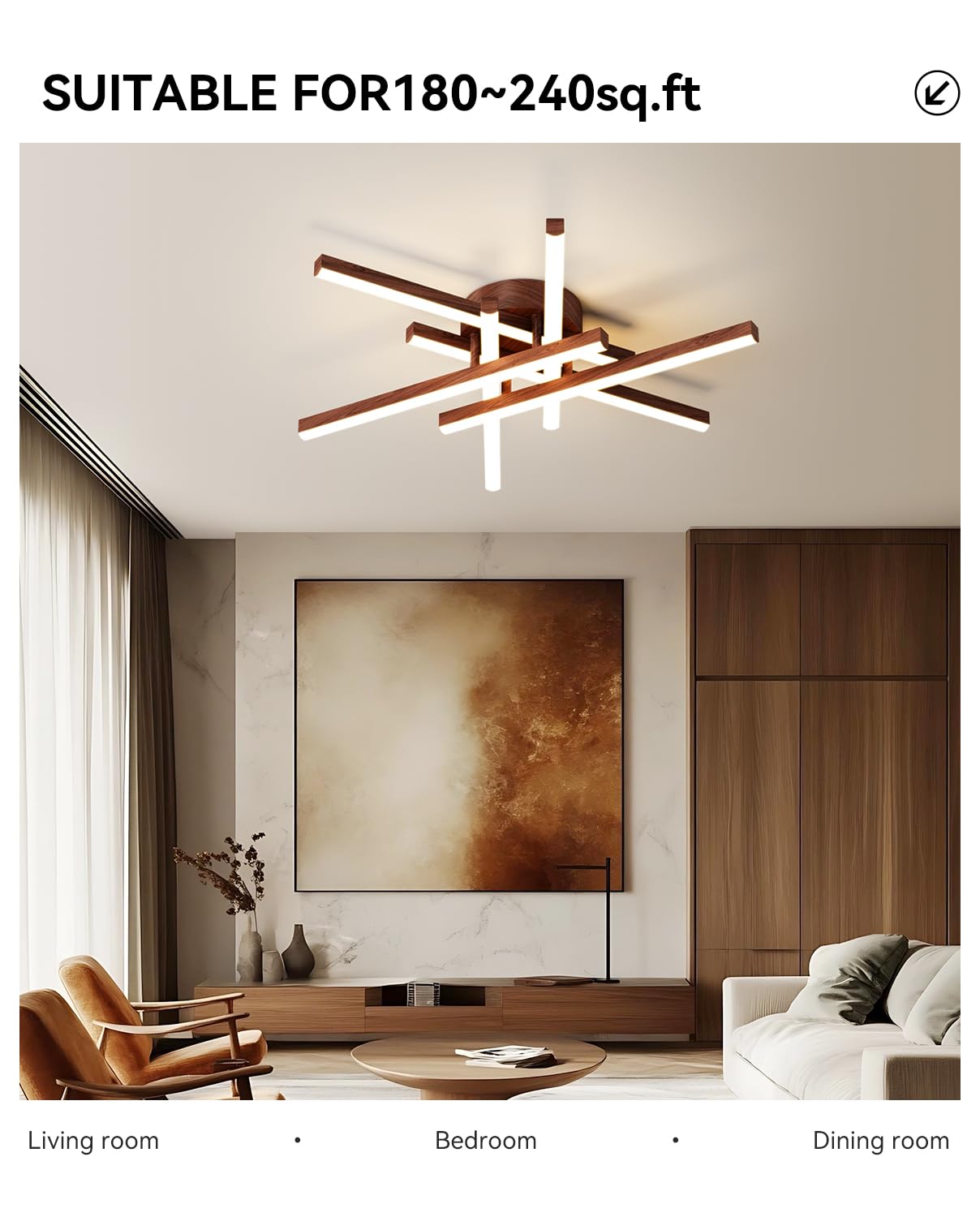 Q: What is the color of this ceiling light fixture?A: The JFHTNFJ Modern Sputnik Ceiling Light Fixture features a wood color finish, which enhances its modern look and complements various interior designs.