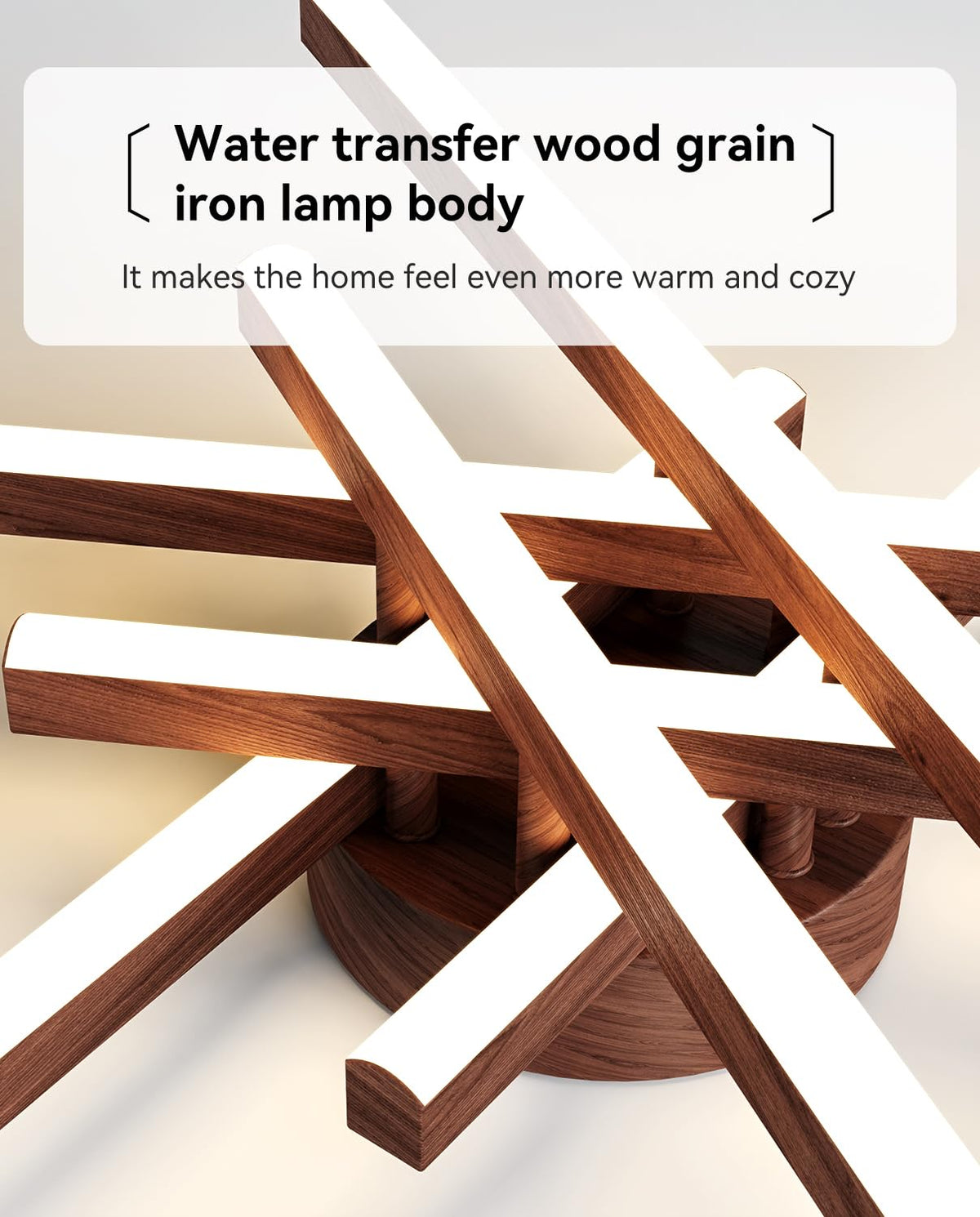 JFHTNFJ Modern Sputnik Ceiling Light Fixture LED Dimmable Remote Control Chandelier 6-Light Wood Color K04