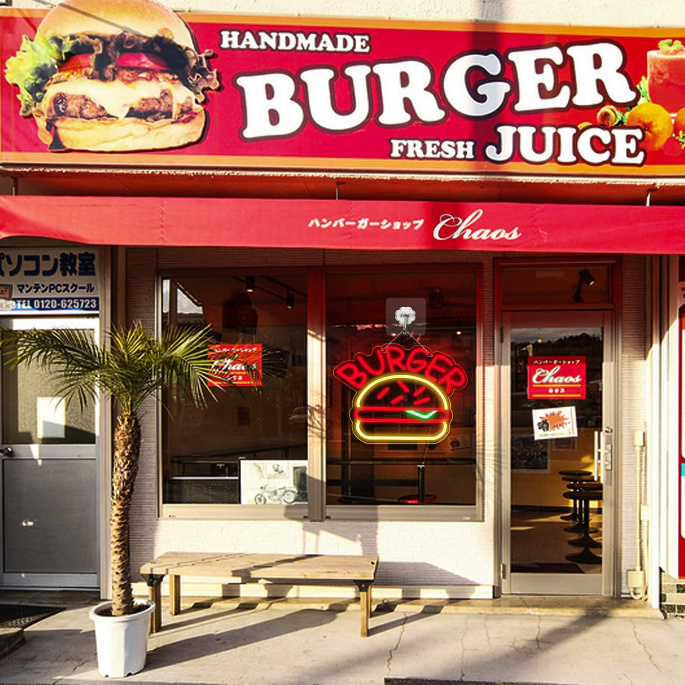 Q: Is the JFLLamp BURGER Neon Sign safe to use?A: Yes, the JFLLamp BURGER Neon Sign is made of eco-friendly plastic and does not generate heat, allowing it to be touched safely. It is designed for prolonged use without safety concerns.