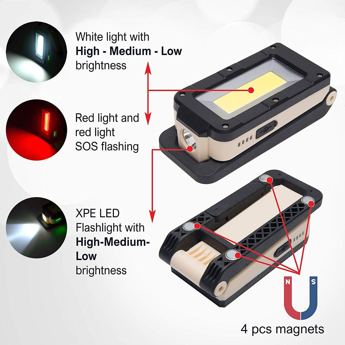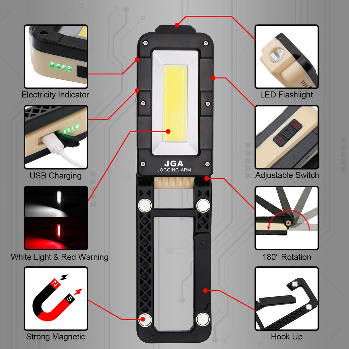 JGA JOGGING ARM Magnetic LED Portable Working Light Rechargeable LED Work Flashlight Super Brightness 180 Rotatable Folding Snap