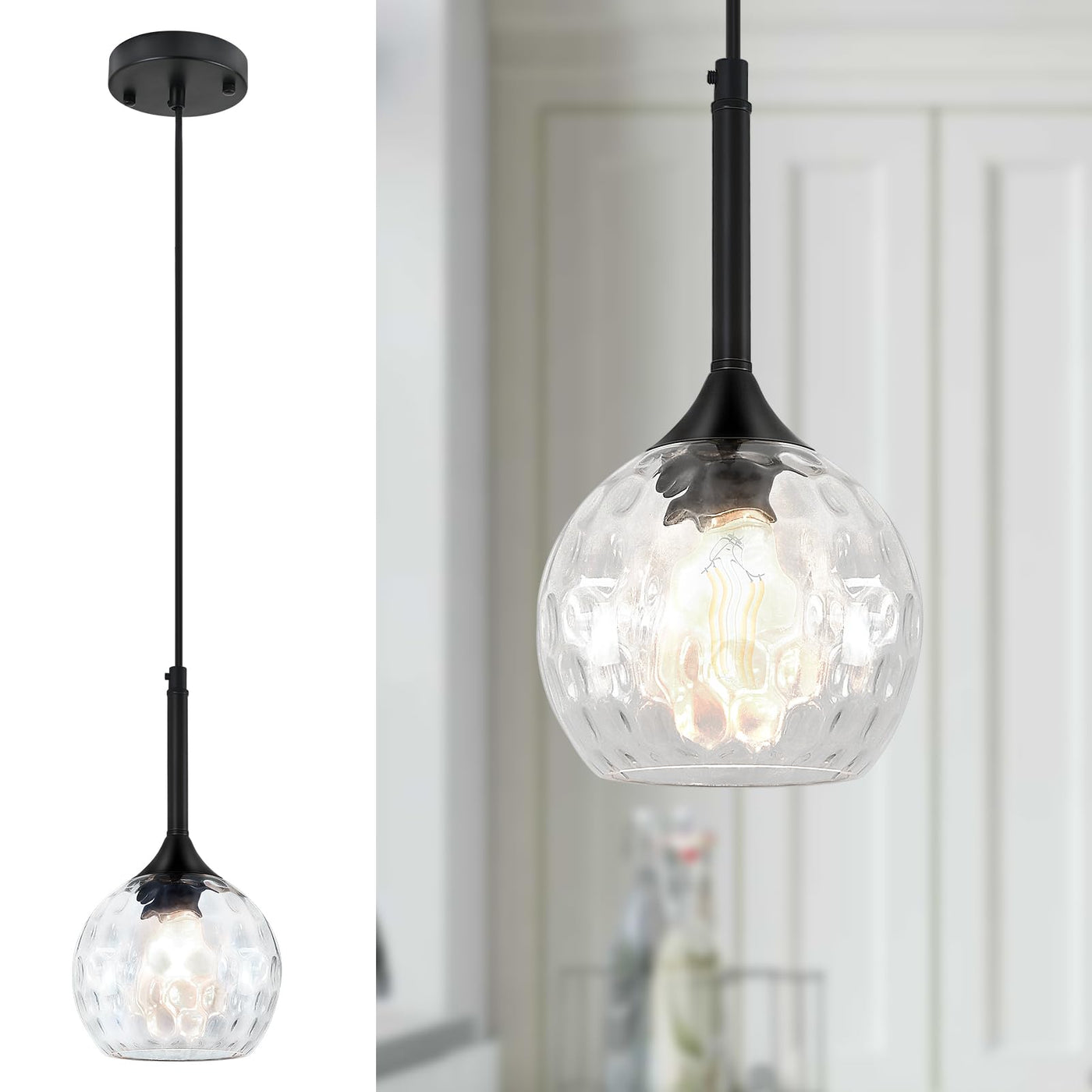 Jhlbyl Glass Pendant Light Fixtures, 6'' Kitchen Pendant Lights Black Pendant Light With Hammered Glass Pendant Lights Kitchen I