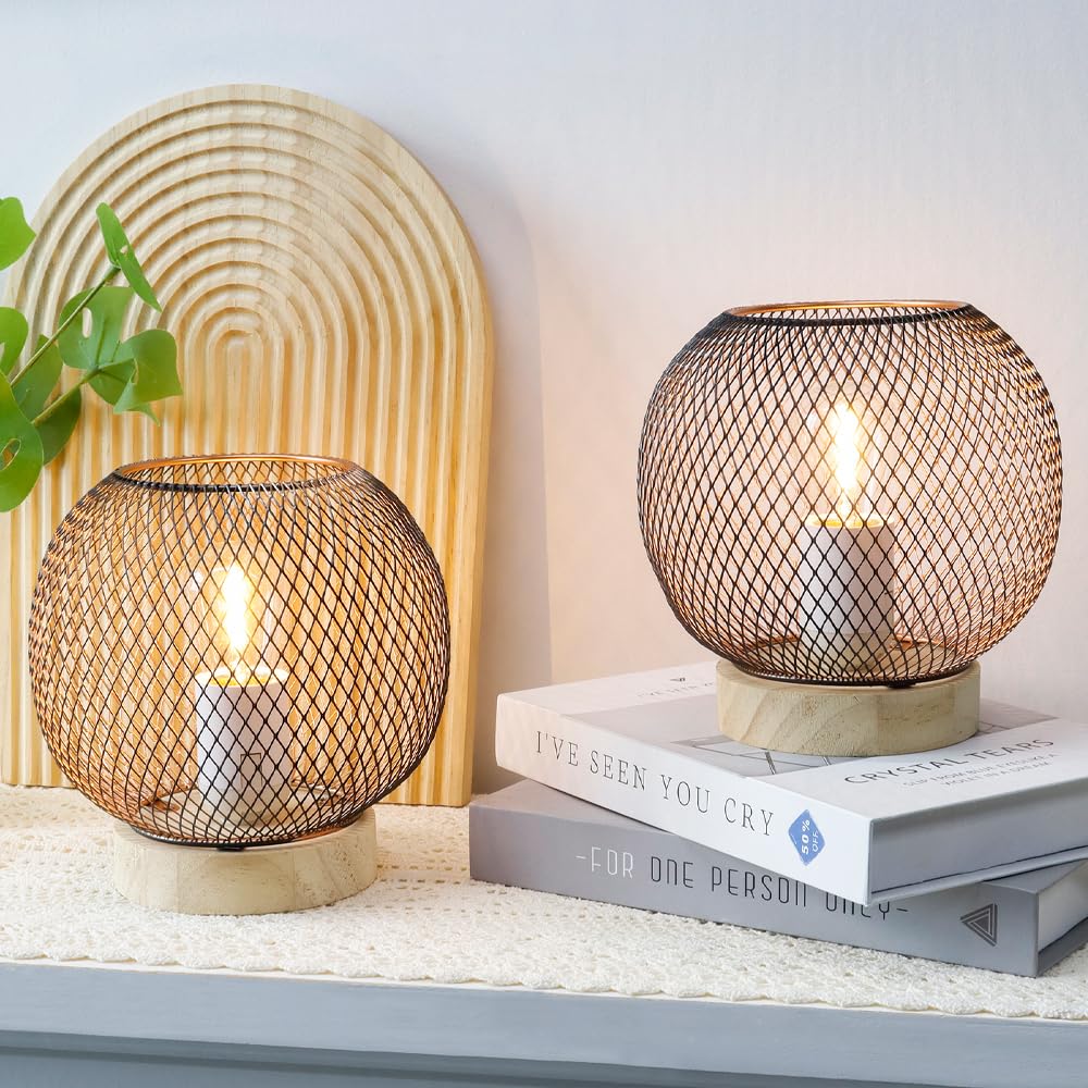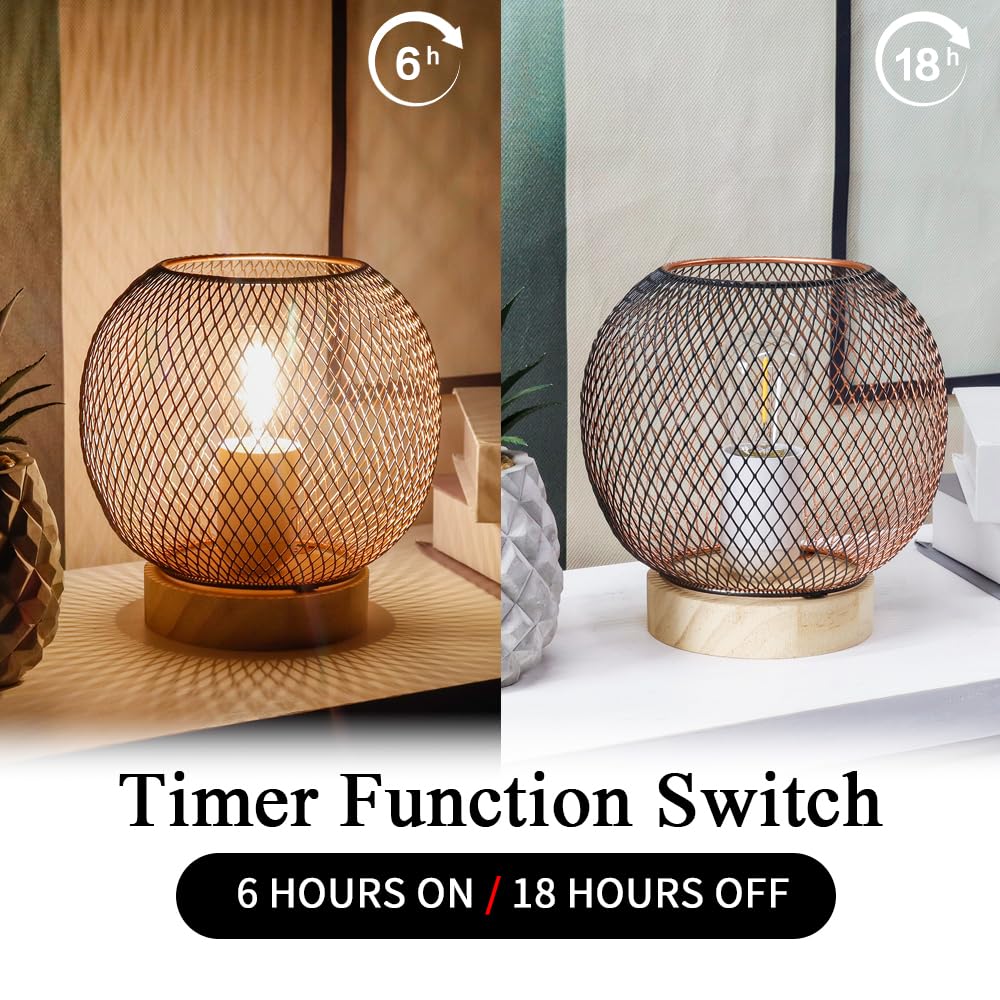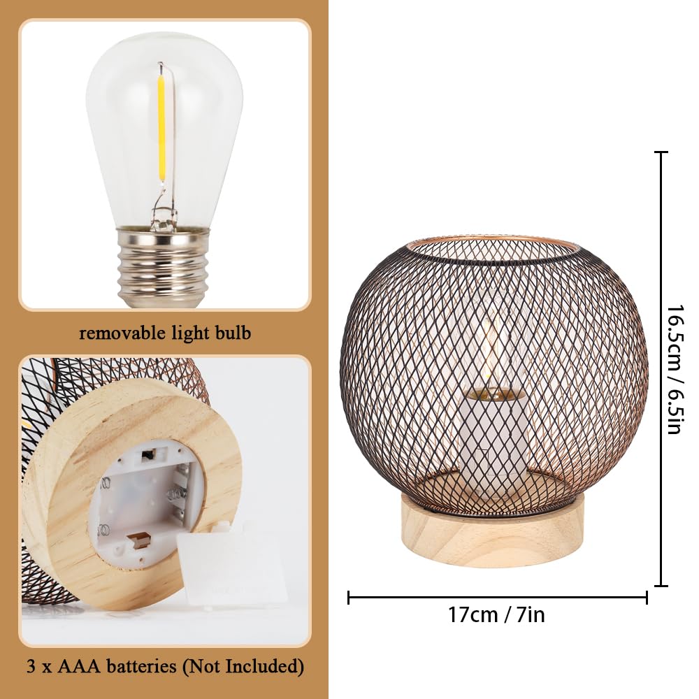 - **Exquisite Design**: With dimensions of 7''L x 7''W x 6.5''H, this table lamp is crafted with a smooth wooden base and a sleek metal mesh shell. Its small footprint makes it an ideal choice for any tabletop, adding a touch of elegance without taking up too much space.