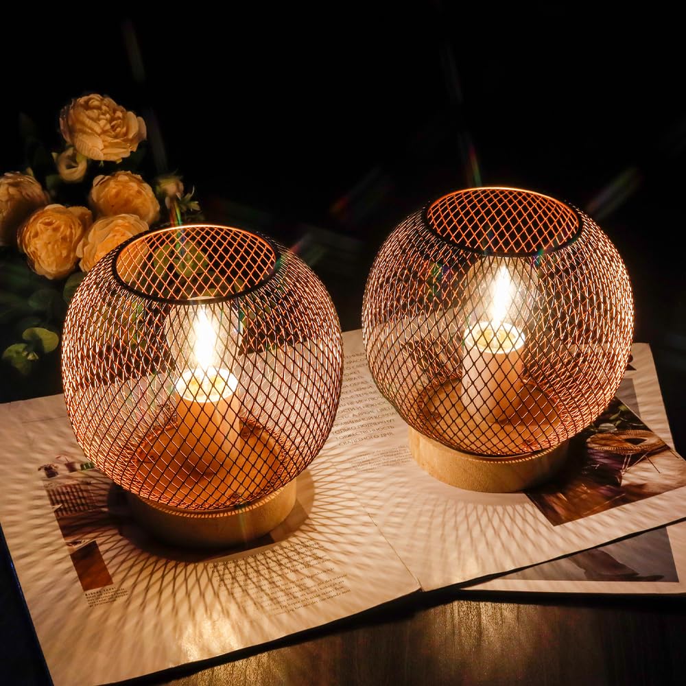 Jhy Design Modern Metal Mesh Table Lamps - Battery Powered, Timer, 6.5'' High, Circular, Cordless