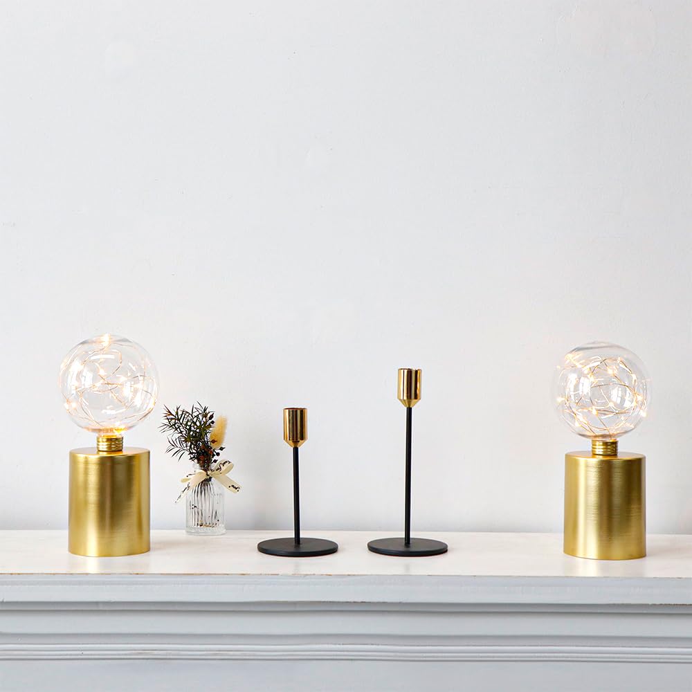 Jhy Design Set Of 2 Gold Table Lamp Battery Powered