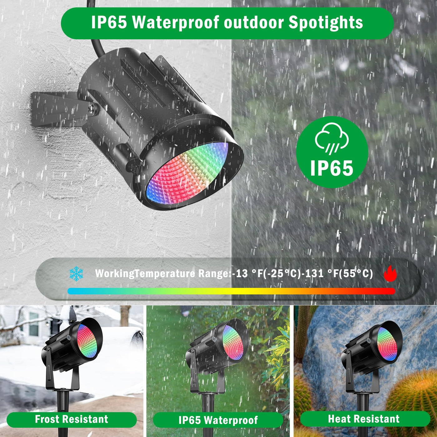 Q: Is the JIAQIYAN RGB Spotlight suitable for outdoor use?A: Yes, the JIAQIYAN RGB Spotlight is designed for outdoor use with an IP65 waterproof rating, making it durable and able to withstand various weather conditions, including rain and snow.