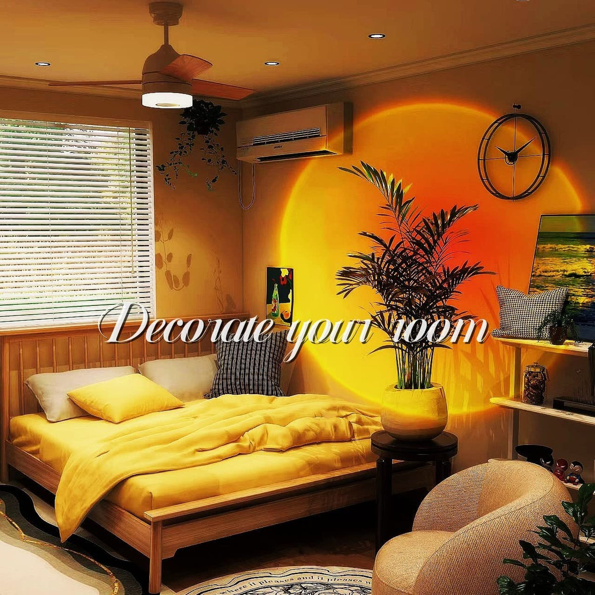 Q: Is the JIMEI Sunset Lamp suitable for bedroom use?A: Yes, the JIMEI Sunset Lamp is perfect for bedroom use. Its warm yellow color creates a romantic and relaxing atmosphere, making it ideal for unwinding after a long day or setting a mood for special occasions.
