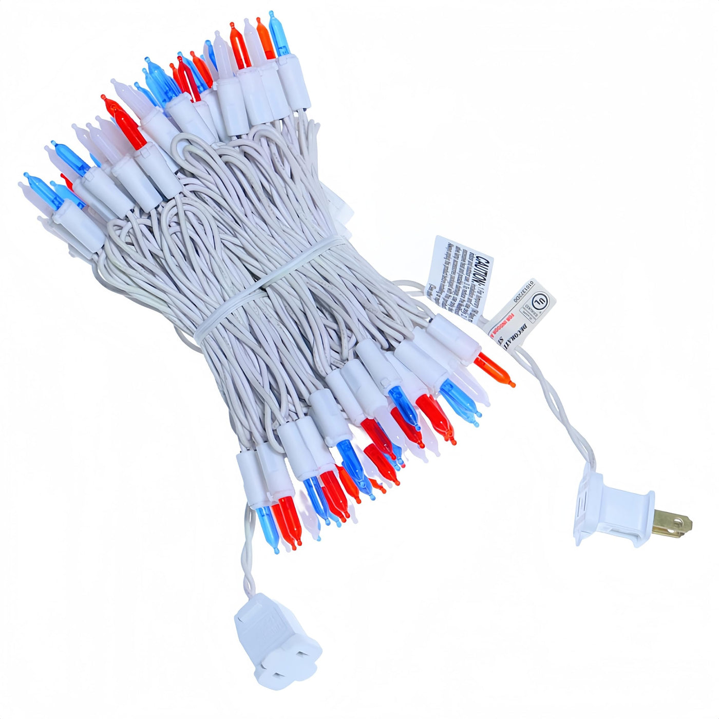 Others Led String Lights Will Always On Light Even If Some Leds Fall Away. 100 Red White And Blue Mini Leds, 35 Ft Length And 4 Inches Spacing, Us Style 2-Pin Plug In And 22# White Wire, End-To-End Connect Up To 15 Sets (1500 Bulbs), For Indoor And Outdoor 4Th Of July, Christmas, Patio.