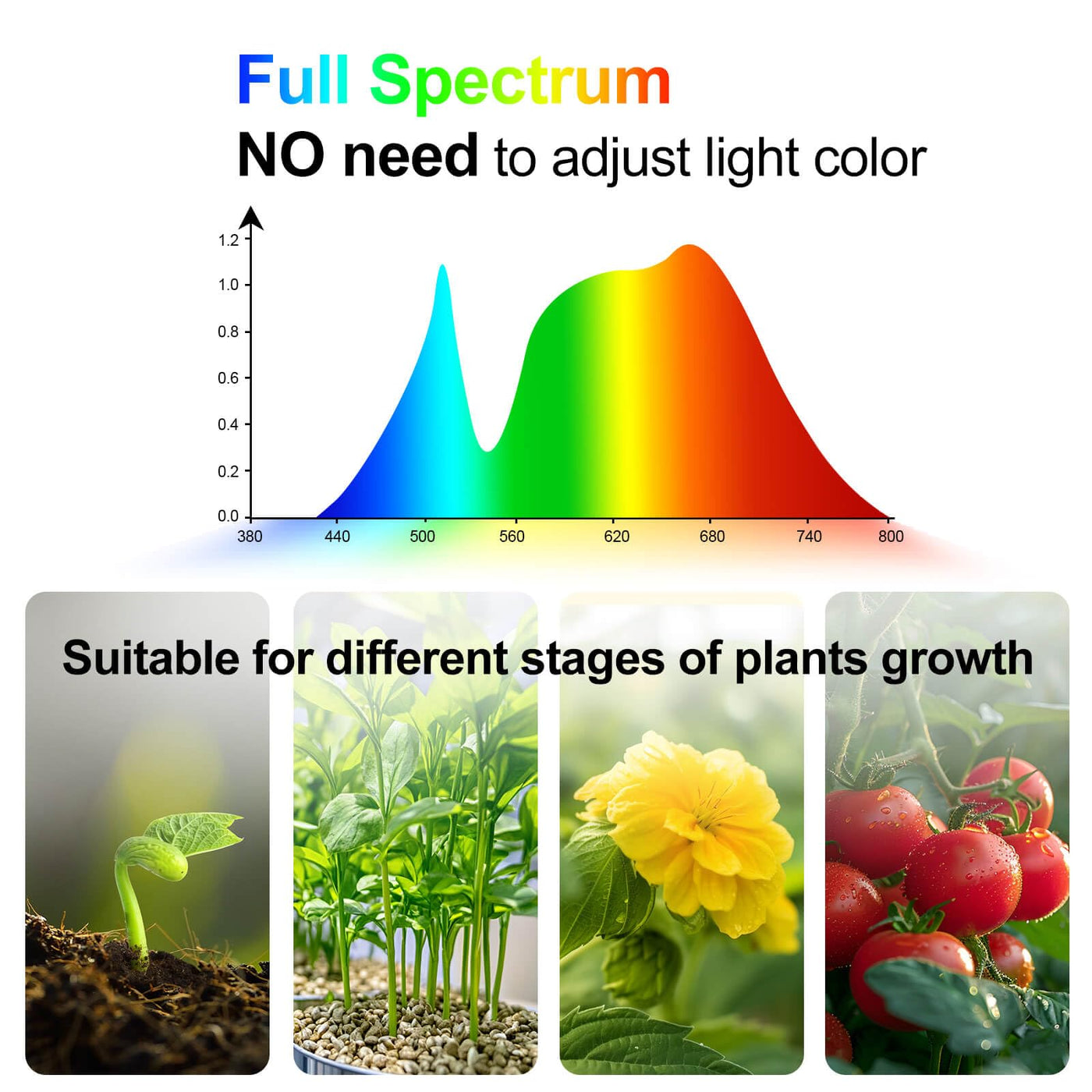 Full spectrum light mimics natural sunlight, suitable for various indoor plants.