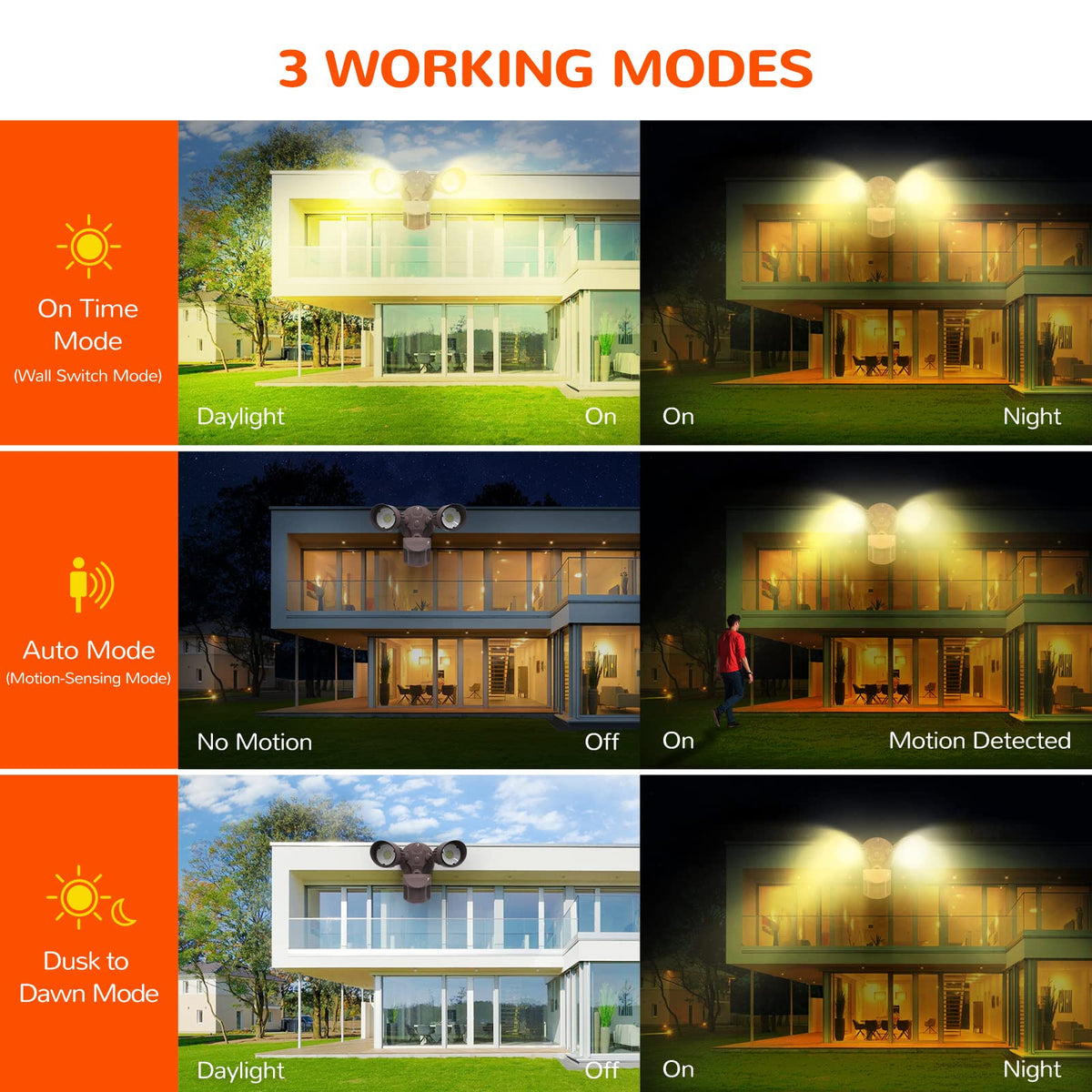 Jjc Led Security Lights Motion Sensor Flood Light Outdoor Fixture,27.5W(120W Equiv.) 3000Lm,Ip65 Waterproof,3000K Warm White Etl