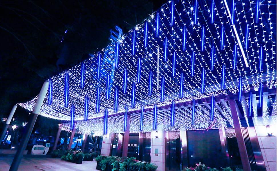 Jjgoo Meteor Shower Rain Lights Led Icicle Snow Falling Christmas Lights - Light Up Whole Winter Season Specification Tube Quantity: 10 Tubes Length Of Each Tube:50Cm/20In Space Between Two Tubes: 50Cm/ 19.7In Length Of Power Cord: 3M/ 10Ft Compatible With Us Standard Outlet (110V) Meteor Shower Effect Jjgoo Rain Lights Act Like A Meteor Shower Or Falling Snow Crosses The Sky. At The Start They Drop At The Same Time And Then There Will Be A Slight Delay Between Each Tube To Run Out Of Sequence Which Is More Natural And Beautiful. Use The Lights Add Fairy And Romantic Atmosphere For Festivals Or Parties. well-made & Long Lifespan Adopt Smd2835 Led Beads Jjgoo Christmas String Lights Is More Brighter And Have Longer Lifespan You Can Hang The Lights Outside Even On Raining Days Perfect For Indoor & Outdoor Decoration Safety Certified & Low Voltage Low Consumption No Over-Heating After Long Time Using. Just Plug It Into The Socket To Turn The Lights On Unplug For Off Super Easy To Operate. The Fairy Lights Is Powered By 7V Low Voltage Plug That Is Lower Than Human Body Safe Voltage For Safe Use Definitely No Risk Of Electric Shock. Compatible With Us Standard Outlet (110V) Permitted In +10%~-10% Fluctuating. Connectable & Extendable The String Lights Is Designed With A Male/Female Plug That Can Be Extenable You Can Connect More Than 2 Strands By Using 1 Plug To Achieve Better Decoration Effect Which Is More Convenient To Use. A Plug Can Connect Up To 4 Meteor Lights To Ensure All Of Them Work Well And Keep The Best Brightness.It Will Be Long Enough To Decorate Almost Everywhere After Connected Together. Waterproof For Outdoor Use The Tubes Are Made Of enhanced Pv Material And The Connection Point Is Well Sealed Which Is Waterproof Corrosion Resistant Dust Proof Aging Resistant And More Durable.