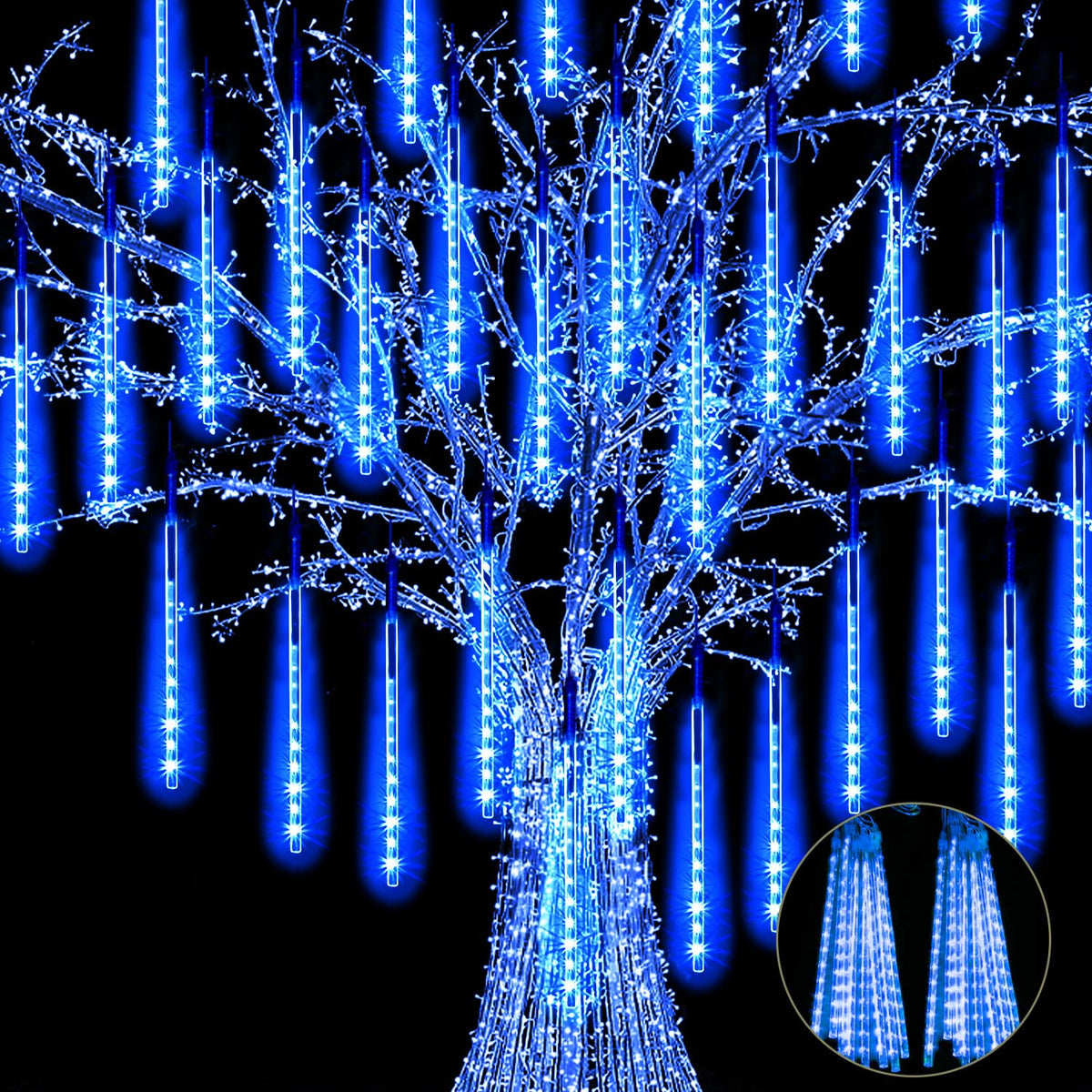 Jjgoo ?2 Pack? Christmas Lights Meteor Shower Rain Lights 20Inch Totally 20 Tube 720 Leds Icicle Light Outdoor Raindrop Light For Xmas Halloween Wedding Party Tree Holiday Decoration Blue