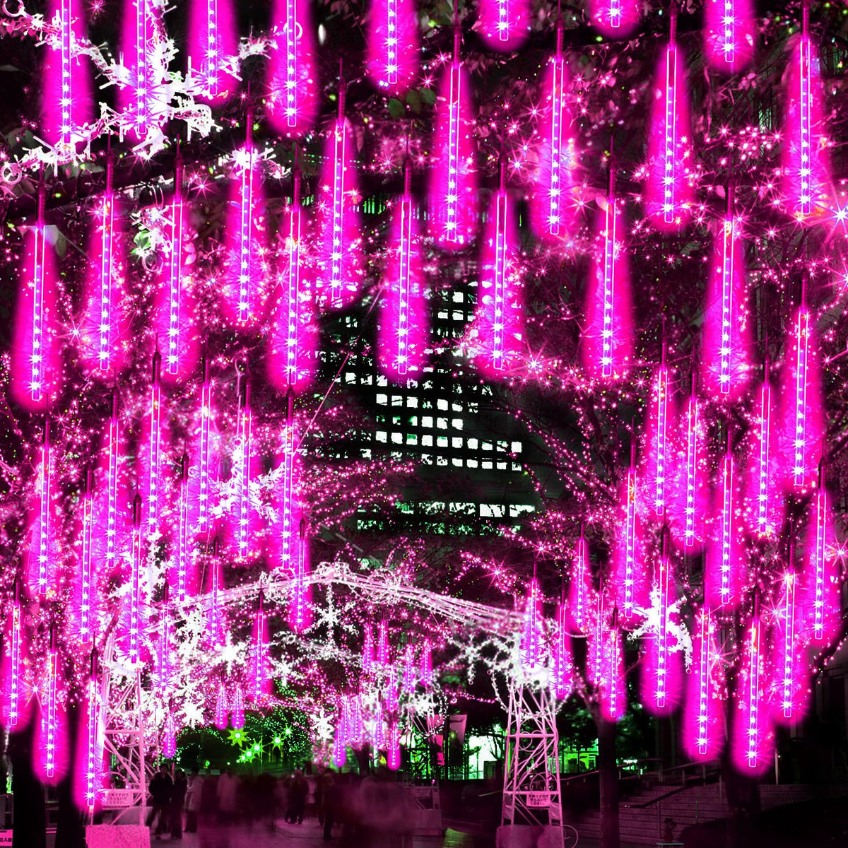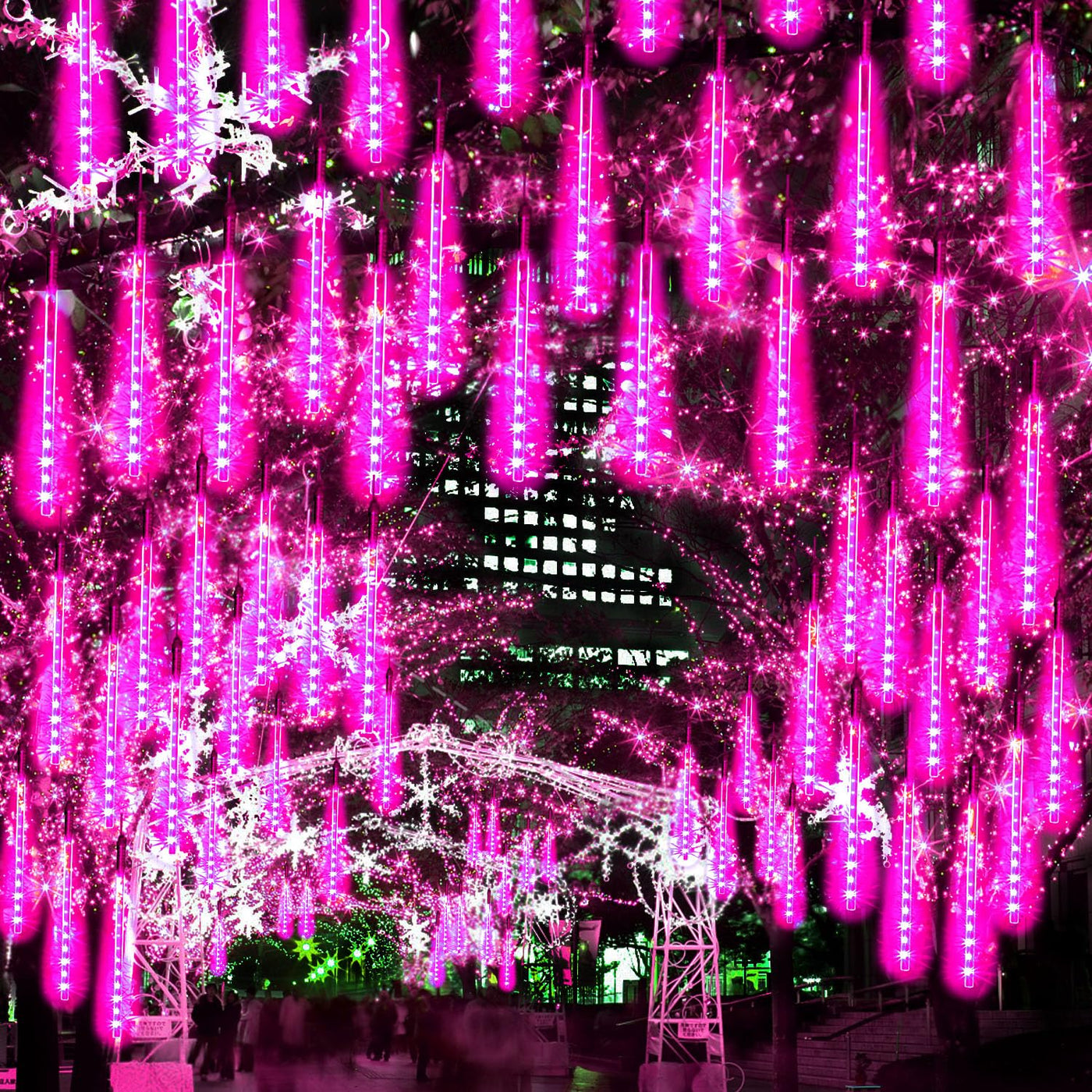 Jjgoo Christmas Lights Meteor Shower Rain Lights 10 Tube 12 Inch 240 Leds Icicle Light Outdoor Raindrop Light For Xmas Halloween Wedding Party Tree Holiday Decoration Pink