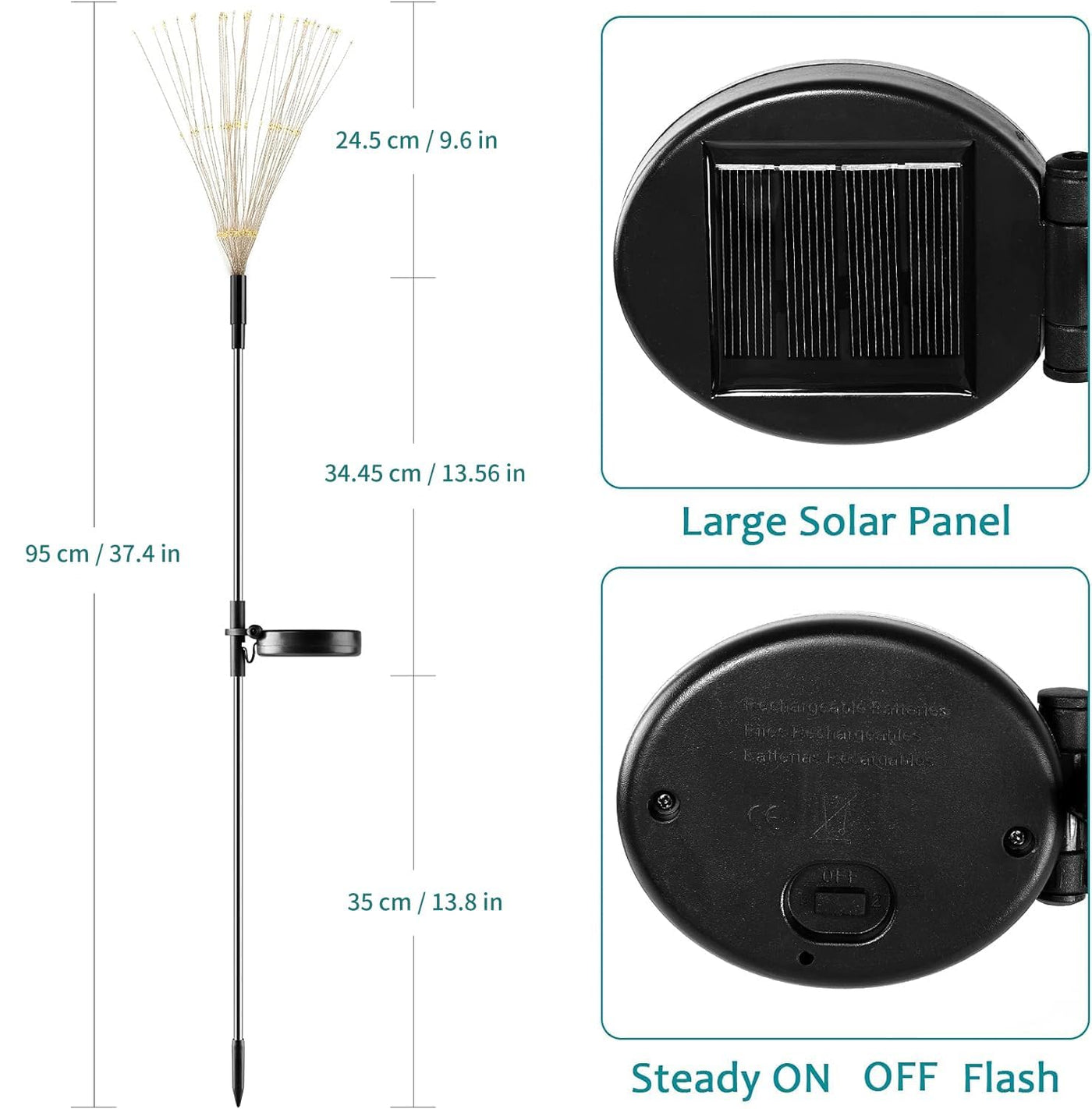 Jjgoo Solar Firework Lights, 2 Pack 150 Leds 2 Lighting Modes Solar Lights Outdoor Waterproof For Garden Patio Walkway Pathway P