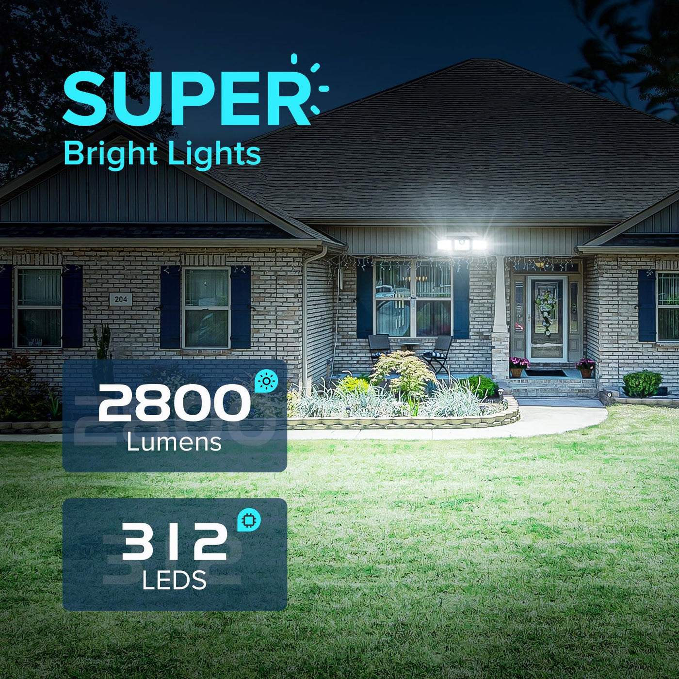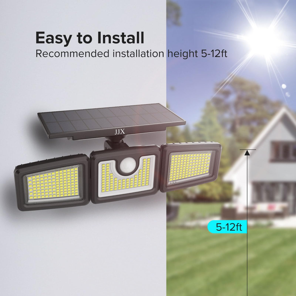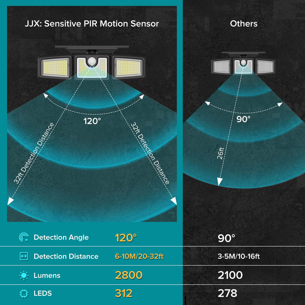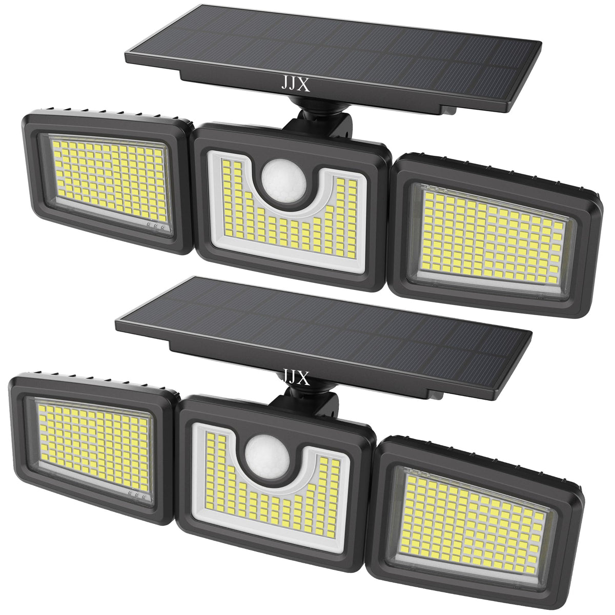 Jjx Solar Lights Outdoor 3000Lm 312 Led Motion Sensor Outdoor Lights, Ip65 Waterproof Led Solar Security Lights, 3 Adjustable Heads Solar Motion Flood Lights Outdoor