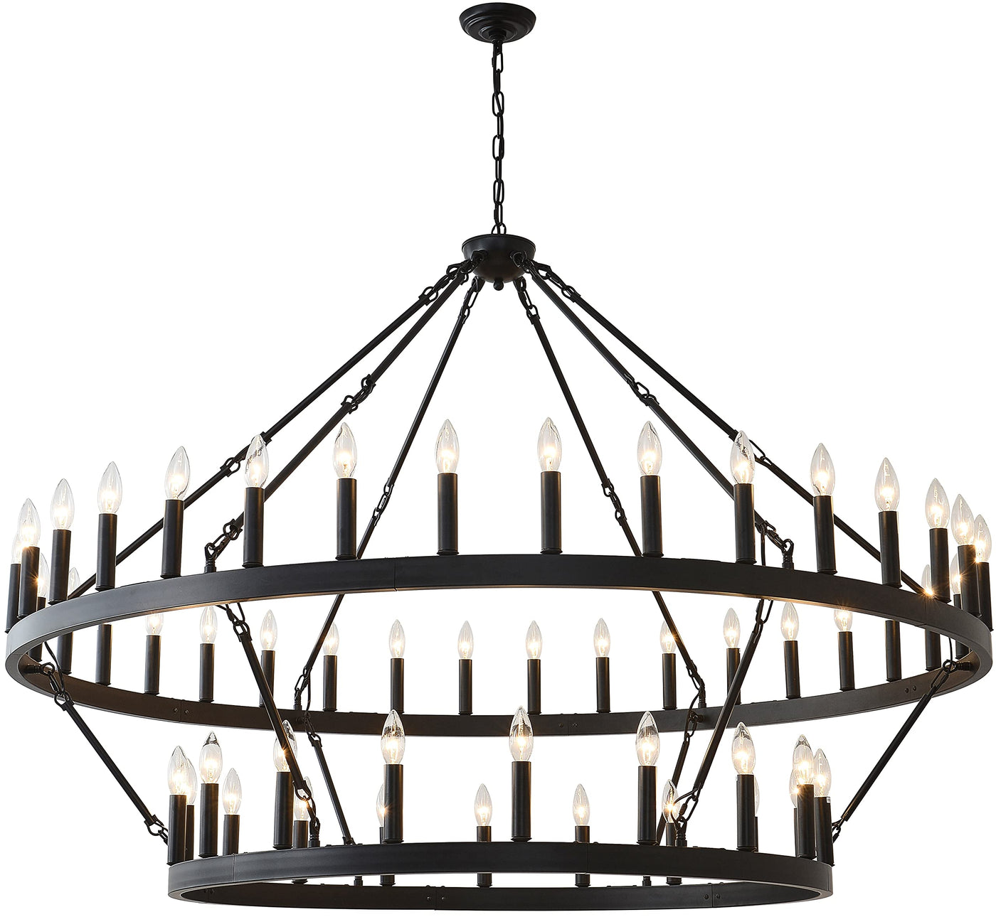JKLX 60 Inch Large Black Wagon Wheel Chandelier,2 Tier 54-Lights Farmhouse Industrial Country Style Round Pendant Light Fixture