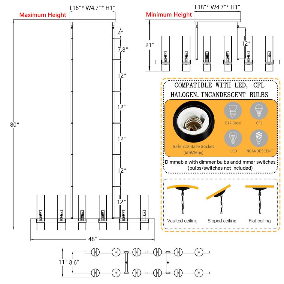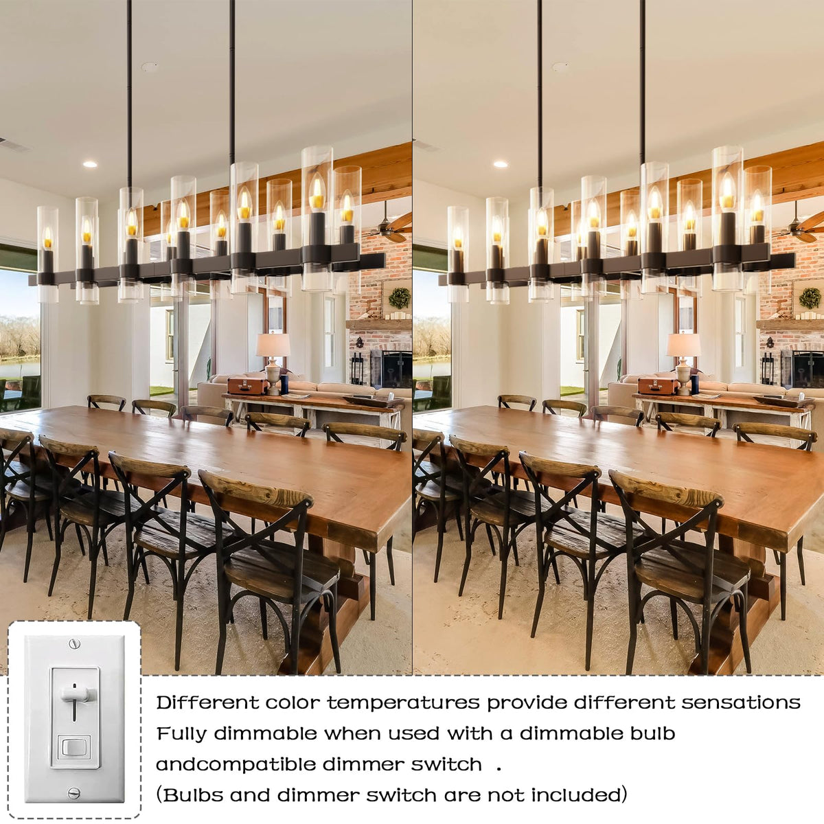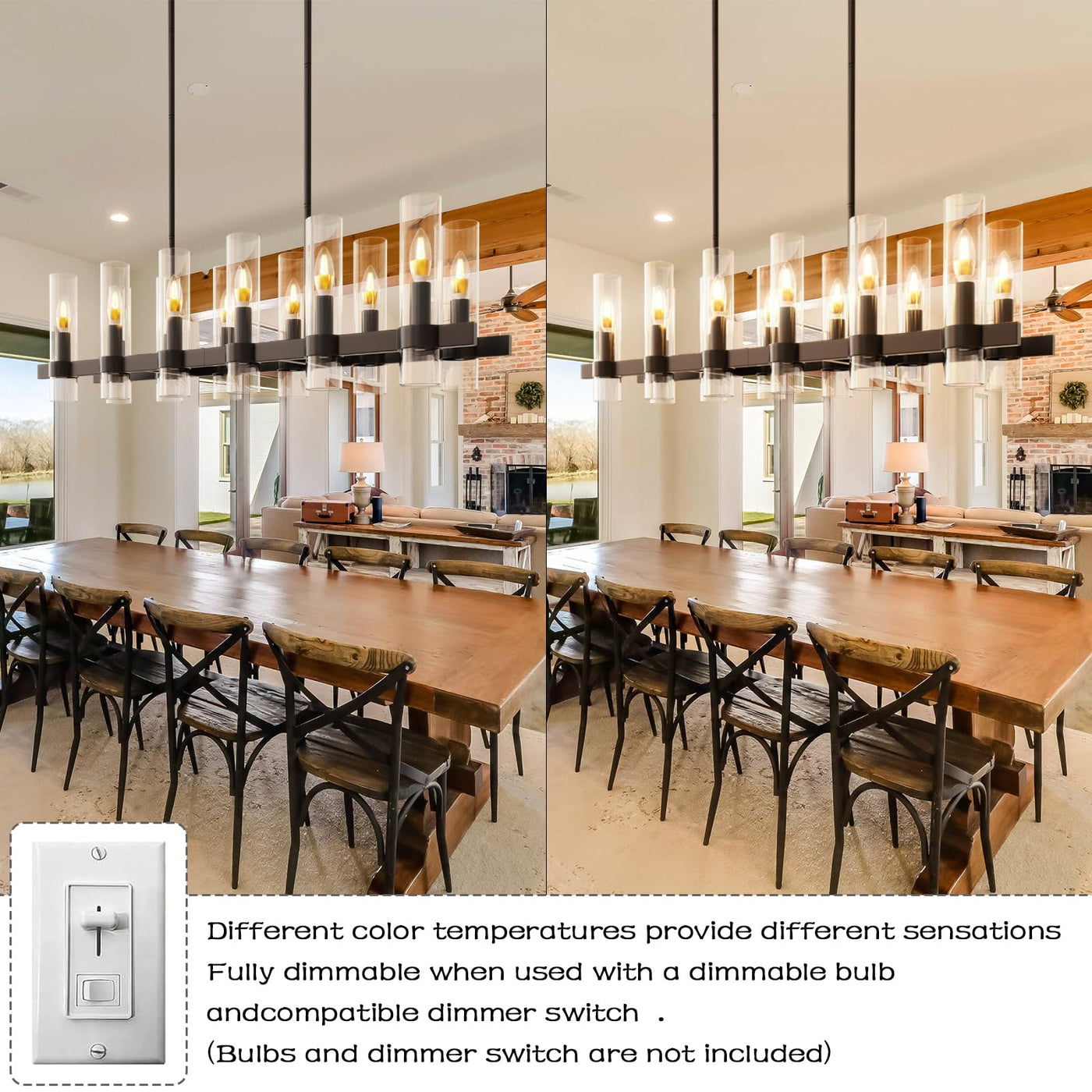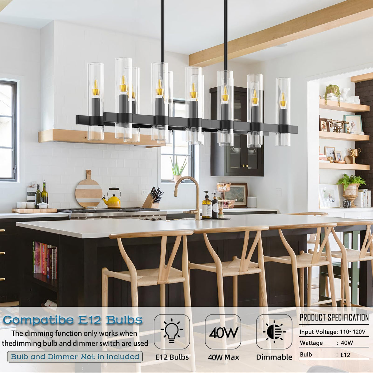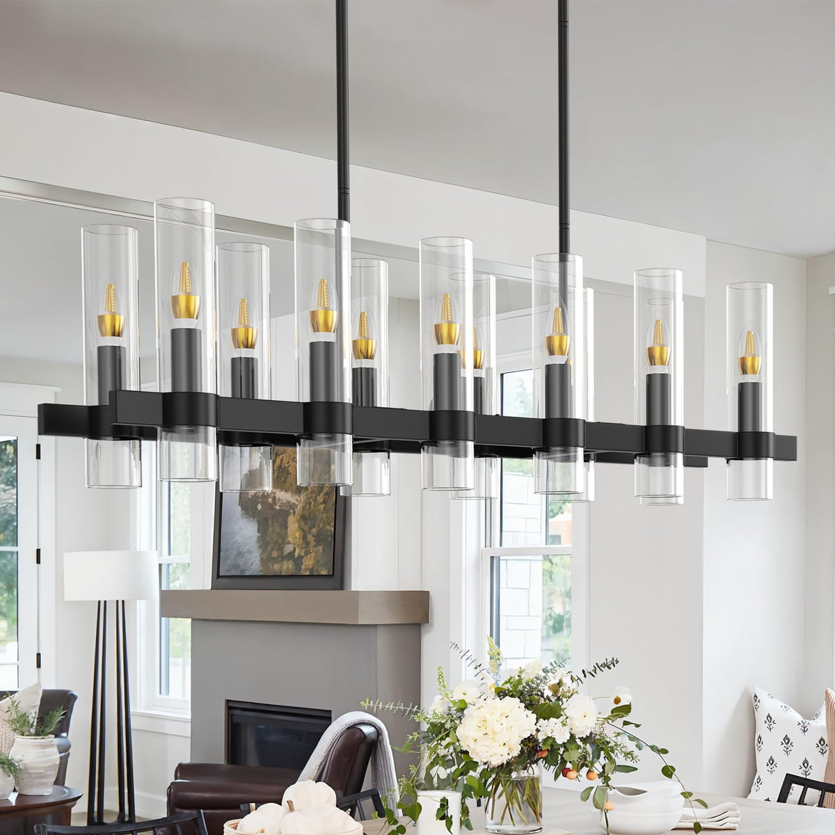 Jklx Modern Black Island Rectangle Chandelier With Clear Glass,48 Adjustable Height Modern Linear Light Fixture 12 Light Dini