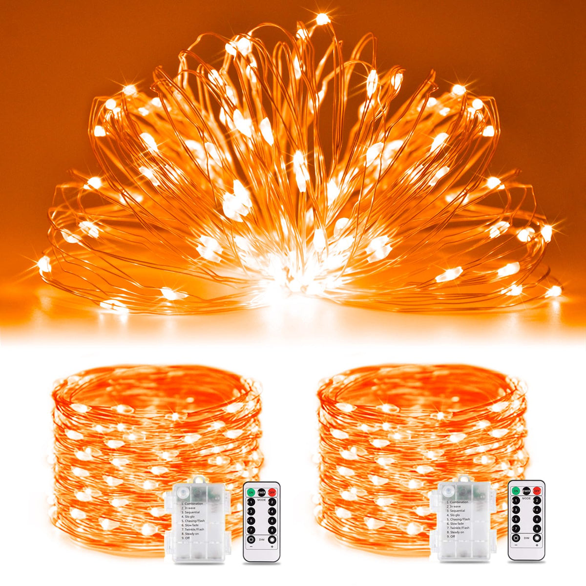 Jmexsuss 100 Led Orange Halloween Fairy Lights, 33Ft Battery Operated With Remote, 8 Modes
