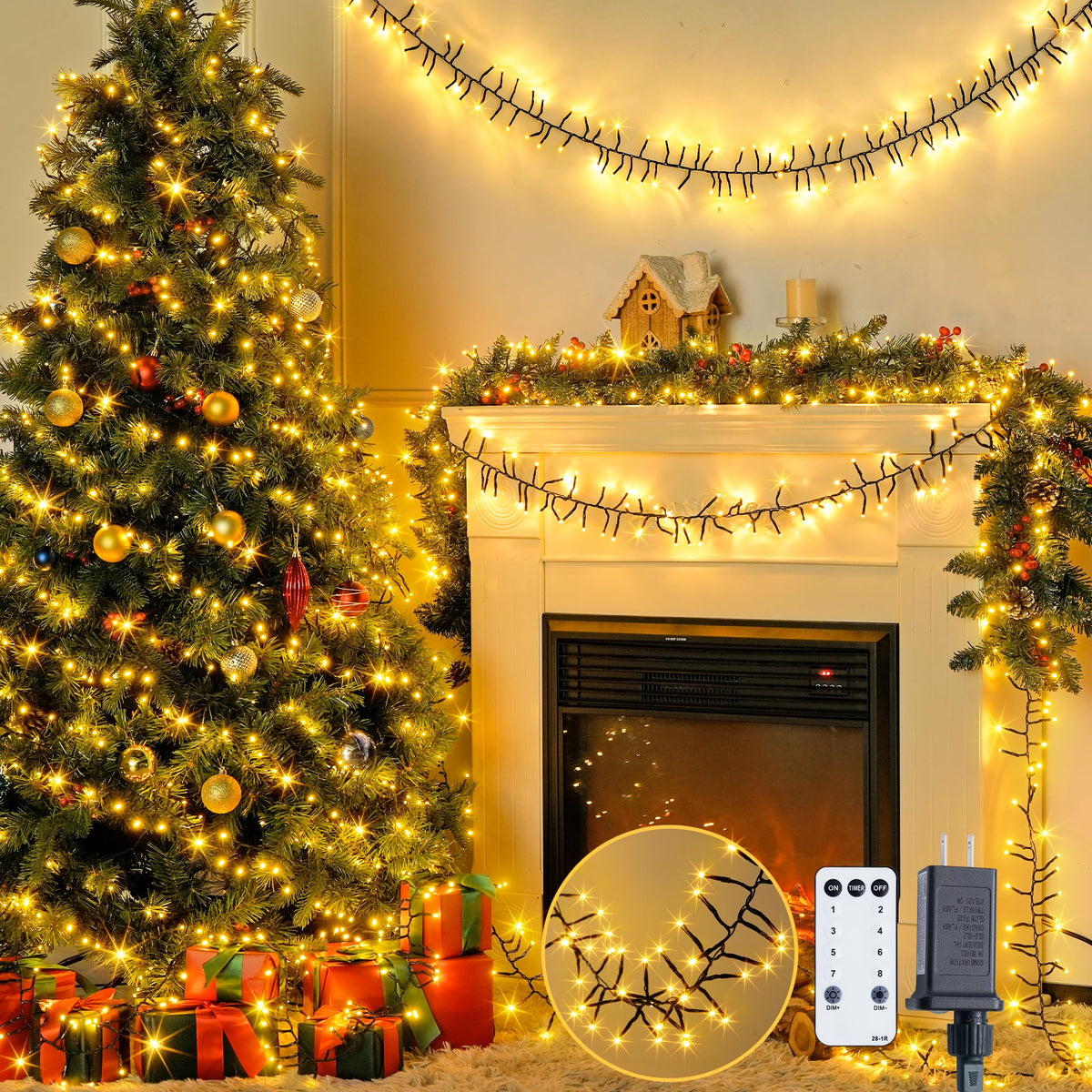 JMEXSUSS 1000 LED Cluster Lights Green Wire Plug in, 67ft Twinkle Lights Outdoor with Remote, 8 Modes Cluster Lights for Christmas Tree Garland Wreath Door Decoration,Warm White