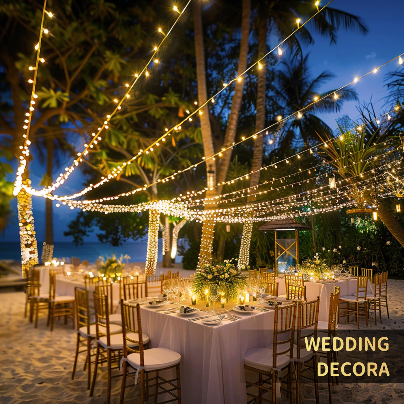 Q: Can these Christmas lights be used for events other than Christmas?A: Yes, these warm white string lights are versatile and can be used for various occasions, including Thanksgiving, weddings, birthday parties, and other festive celebrations, enhancing the ambiance of any event.