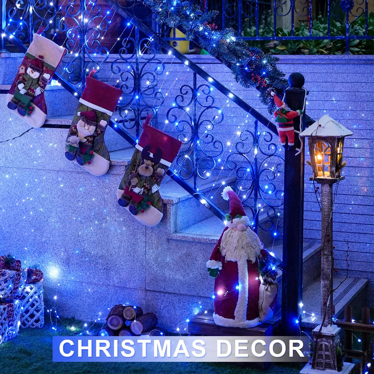 Jmexsuss 2 Pack 100 Led Blue And White Fairy Lights Battery Operated, 33Ft Blue And White Christmas Lights With Remote, 8 Modes Battery Powered Twinkle String Lights For Bedroom Christmas Tree Decor