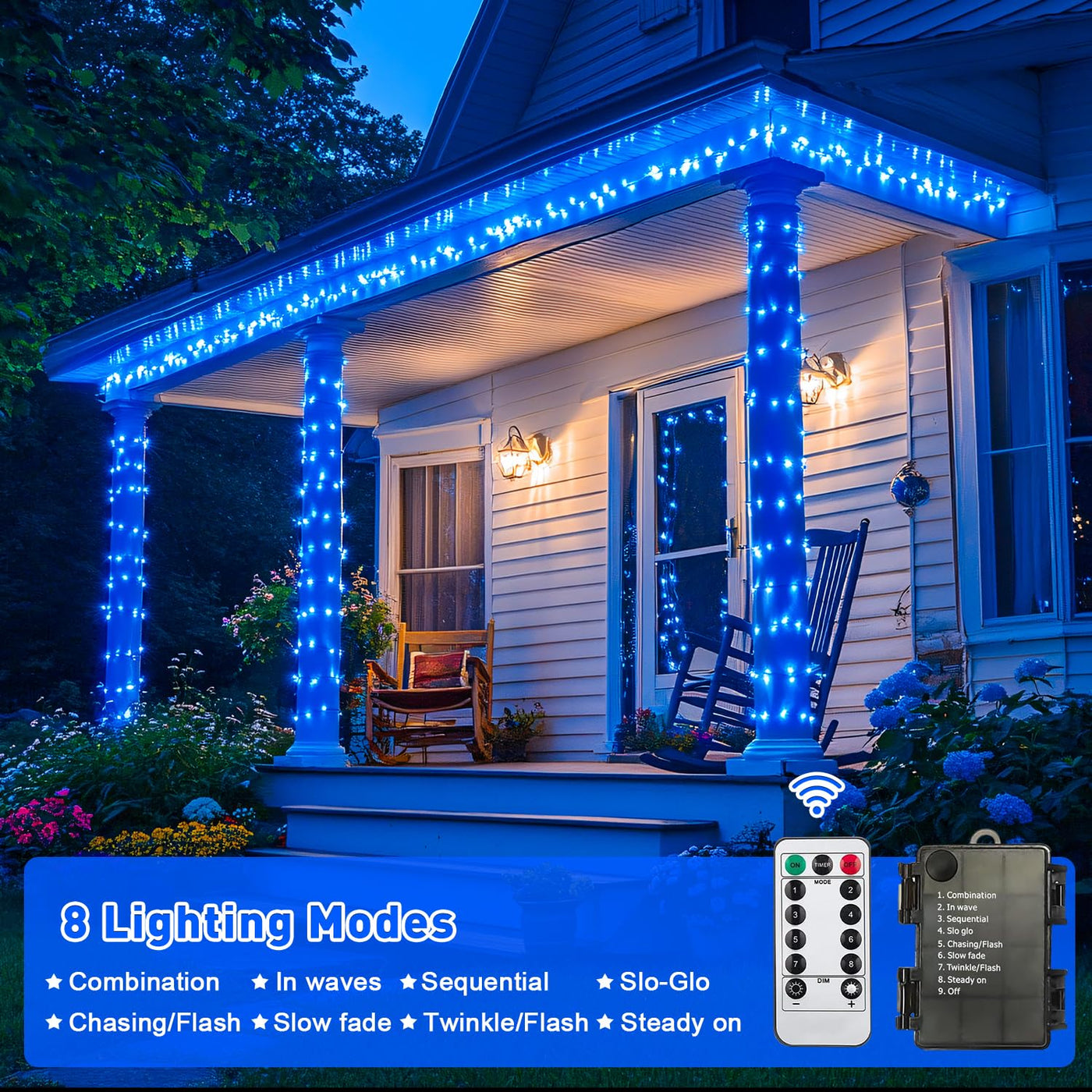 Jmexsuss Blue Christmas Lights Outdoor Waterproof, Each 33 Ft Battery Operated String Lights With Remote, 2 Pack 100 Led Christmas Tree Lights Indoor Outdoor For Party Garden Porch Yard Decor