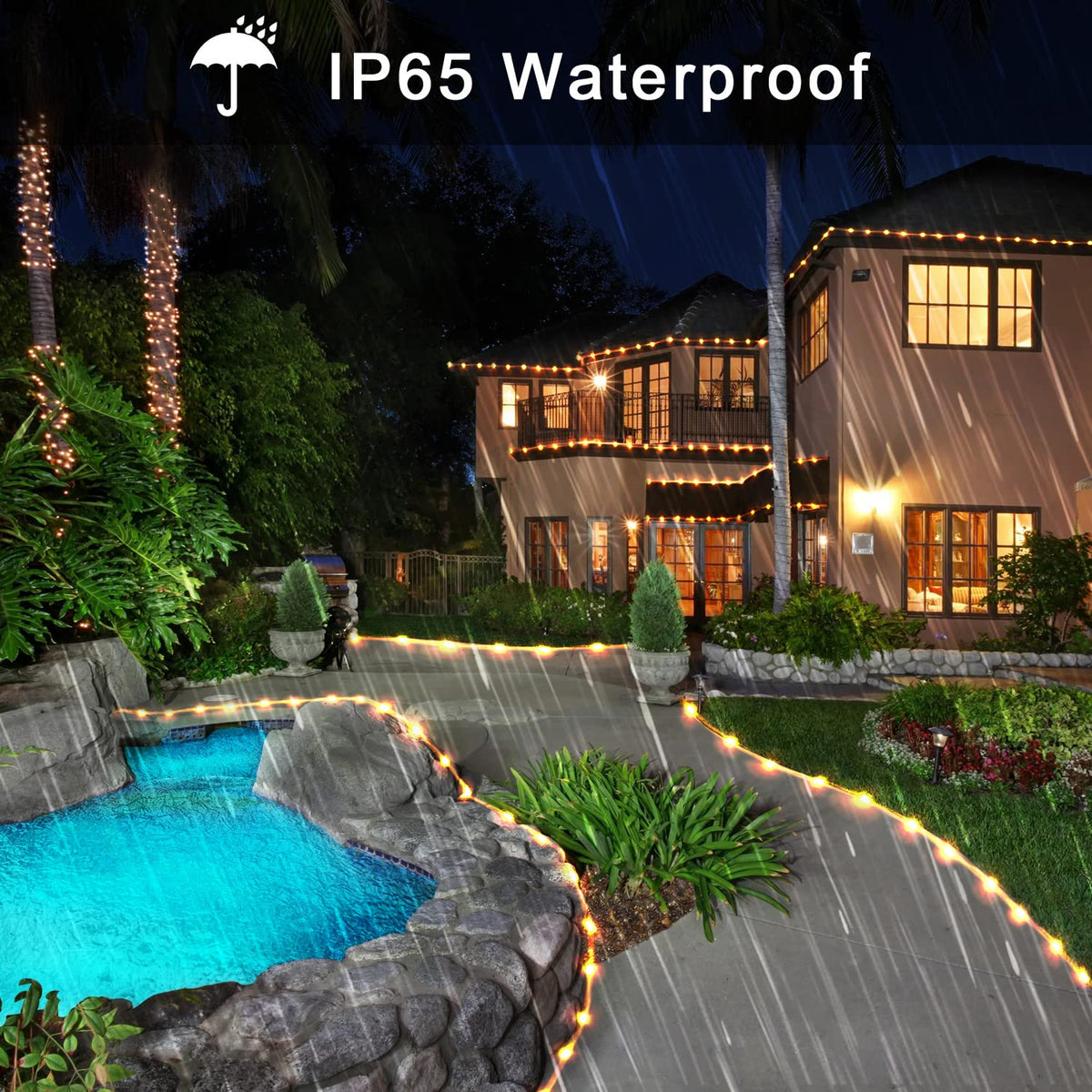 Q: Are the JMEXSUSS Solar Rope Lights waterproof?A: Yes, these solar rope lights are IP65 rated, meaning they are waterproof, frost-proof, and sun-proof. They are durable enough for various indoor and outdoor decorations throughout the year.