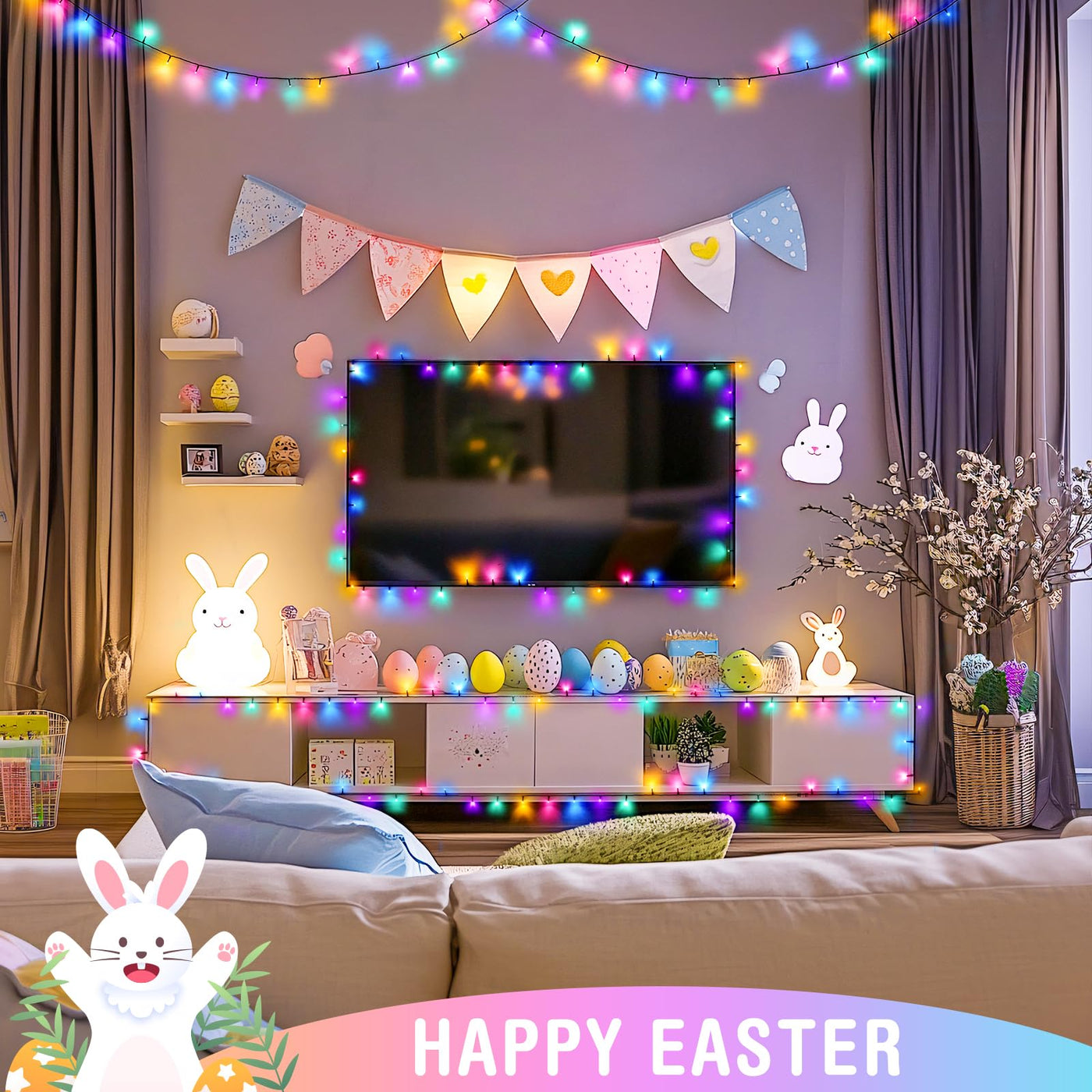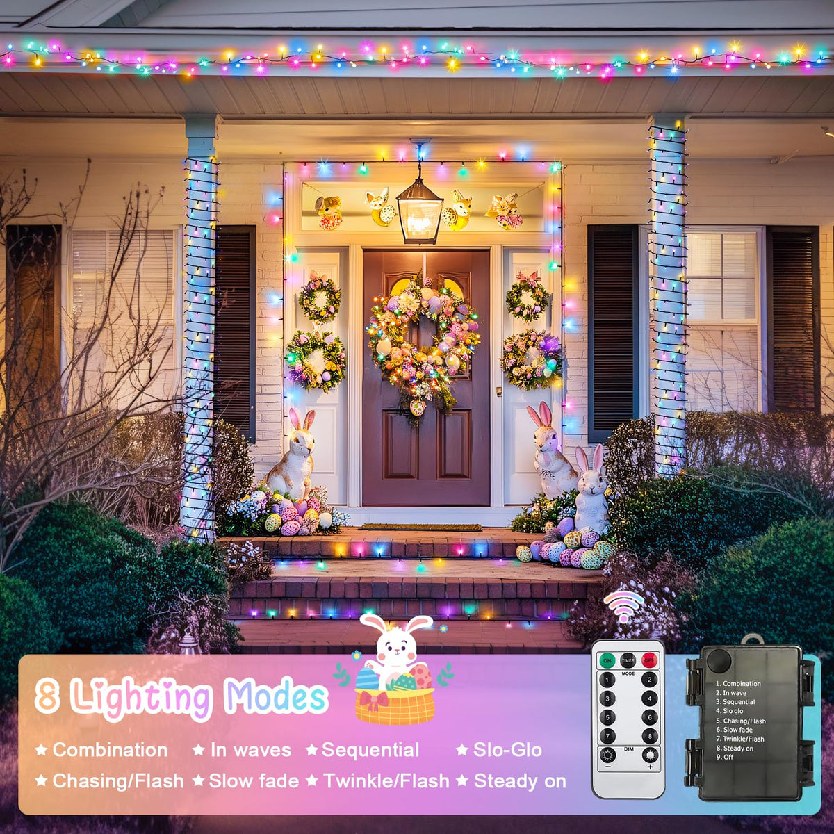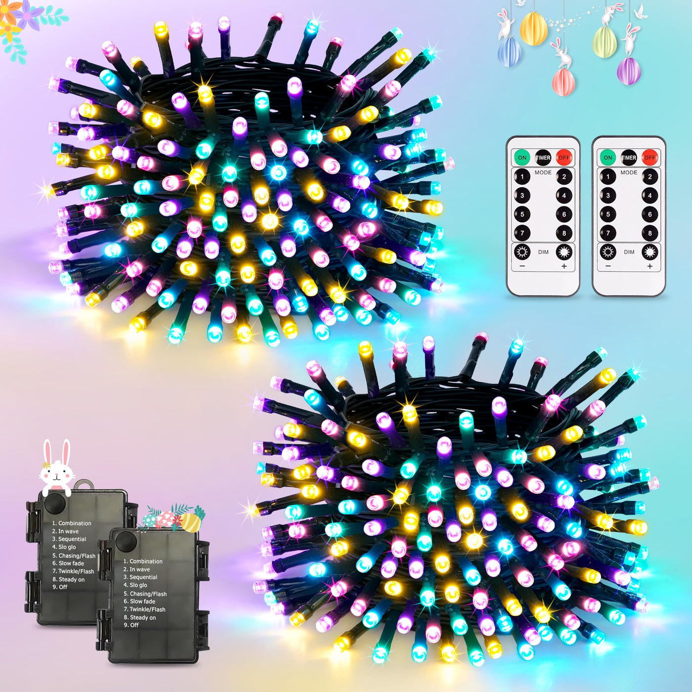 Jmexsuss 2 Pack Easter Lights Battery Operated,Each 33 Ft 100 Led Easter Lights String Outdoor Indoor, Colored Christmas Lights