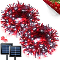 Jmexsuss 2 Pack Red And White Christmas Lights, Each 100 Led 33Ft Solar String Lights Outdoor Waterproof, 8 Modes Green Wire Solar Lights For Outside Tree Garden Patio Party Decoration