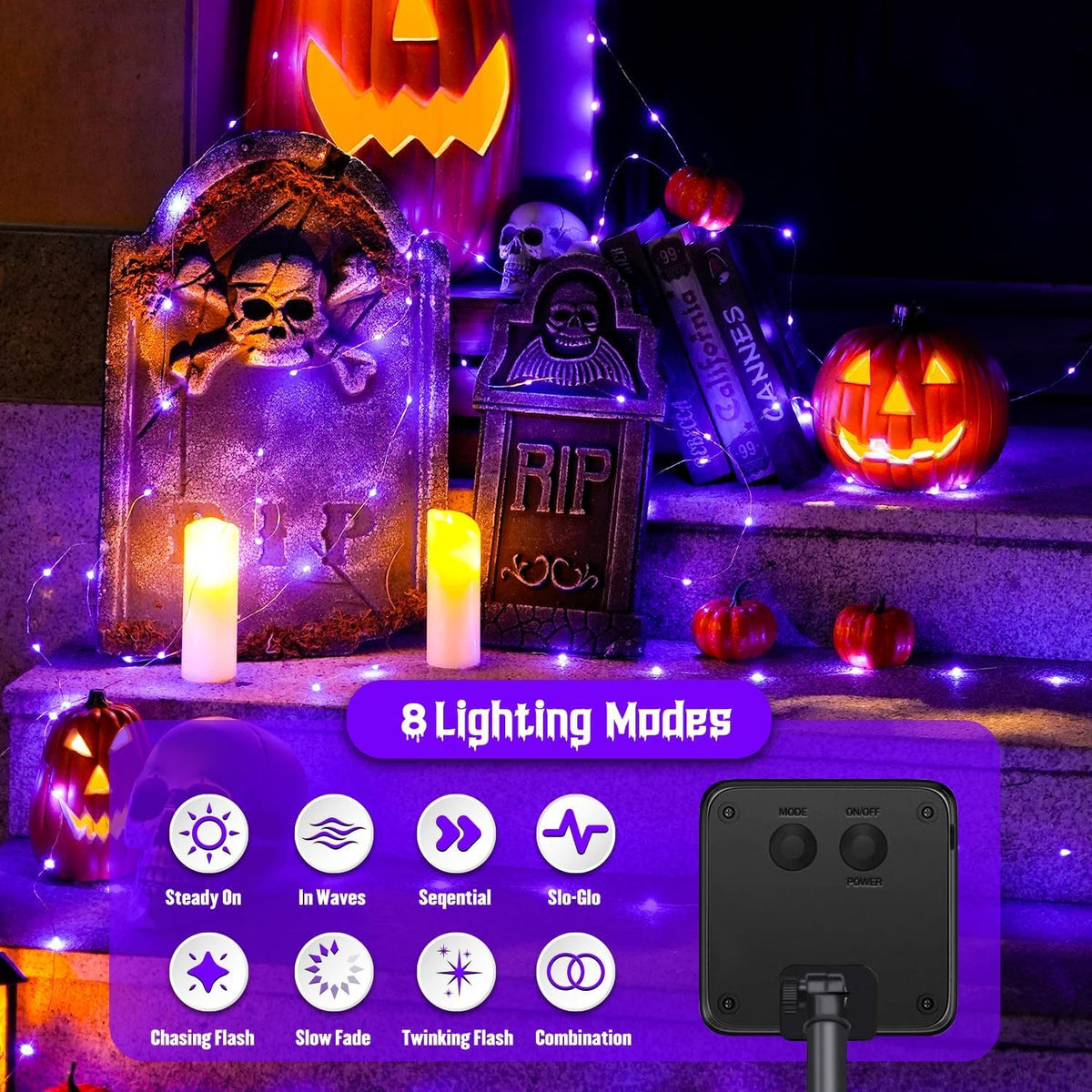 8 Lighting Modes: Choose from Waves, Combination, Fading, Fireflies, Chasing, Twinkle, Fading Slowly, and Steady-On to suit different moods and occasions.