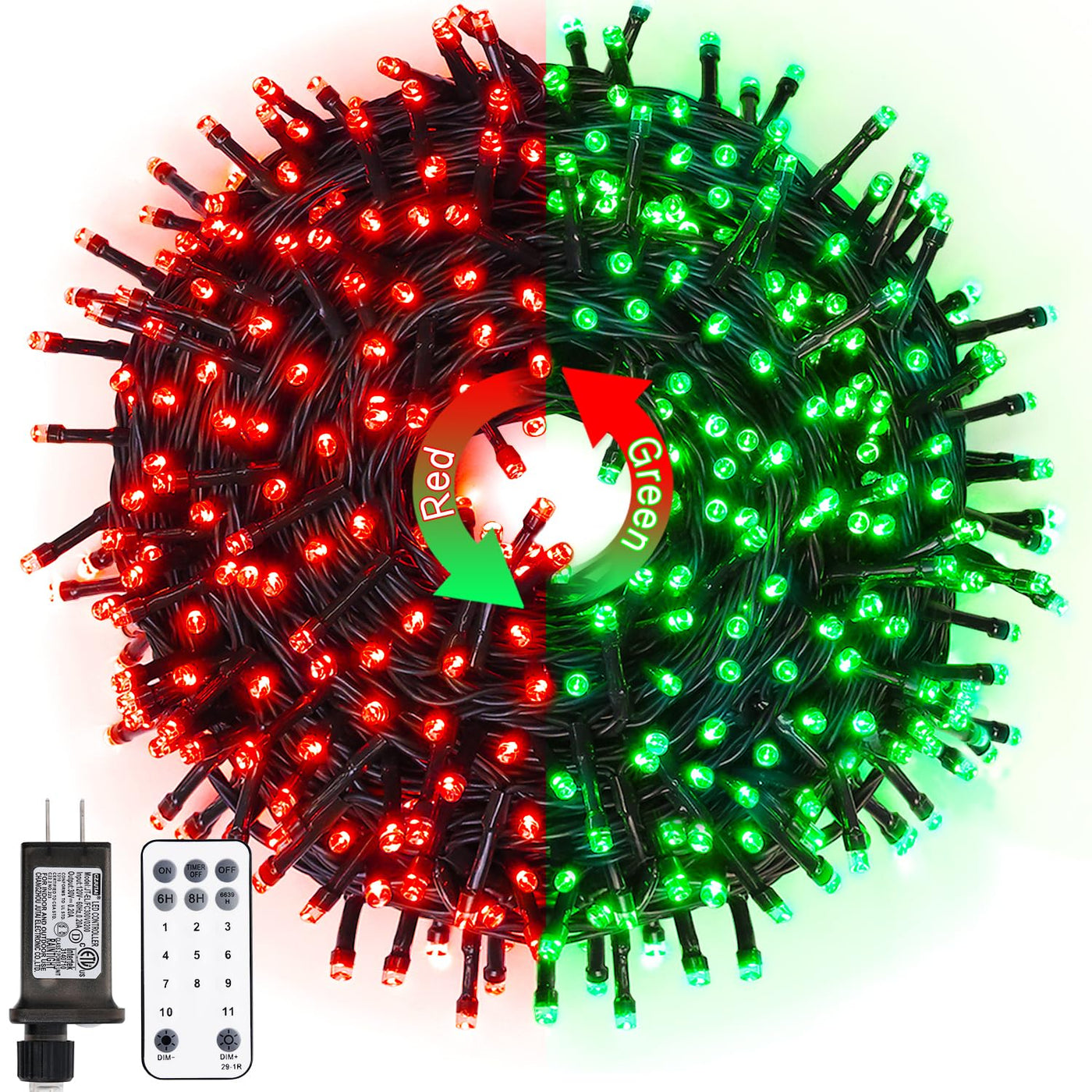 JMEXSUSS 200 LED Christmas Lights, 66ft Red and Green, 11 Modes, Waterproof, Connectable, Model EXS-S-0200-R