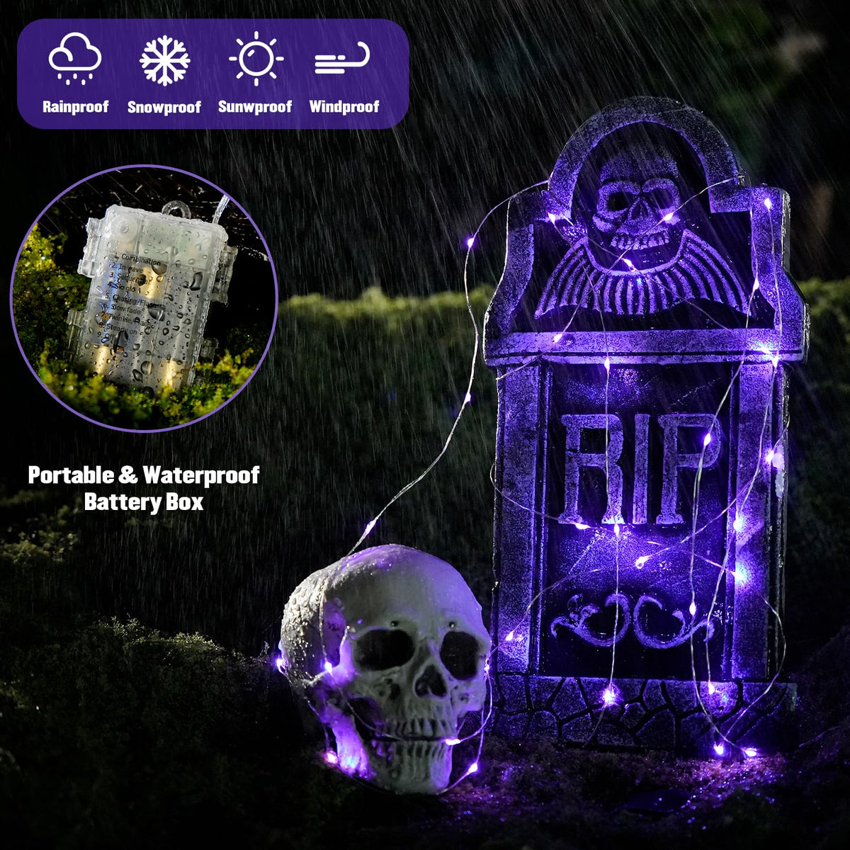Q: Are these fairy lights suitable for outdoor use?A: Yes, the JMEXSUSS Halloween Fairy Lights are designed for outdoor use as they are waterproof with an IP44 rating, making them resistant to rain and snow.