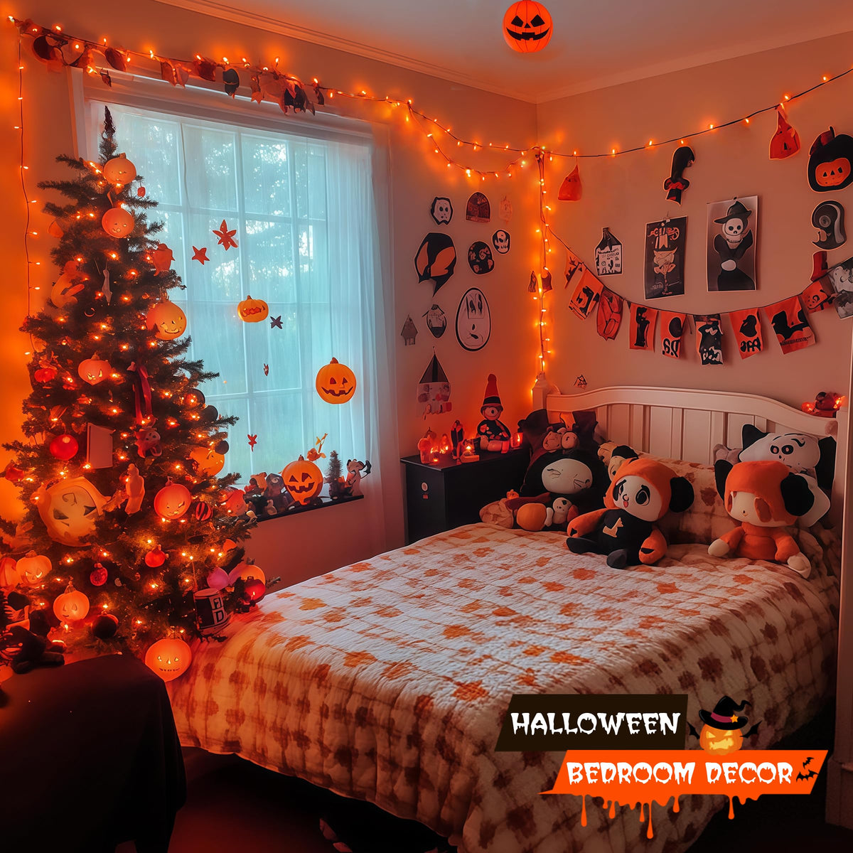 Jmexsuss 200 Led Orange Halloween Lights Outdoor, 66Ft Connectable Halloween String Lights Plug In, 8 Modes Orange Light For Tre