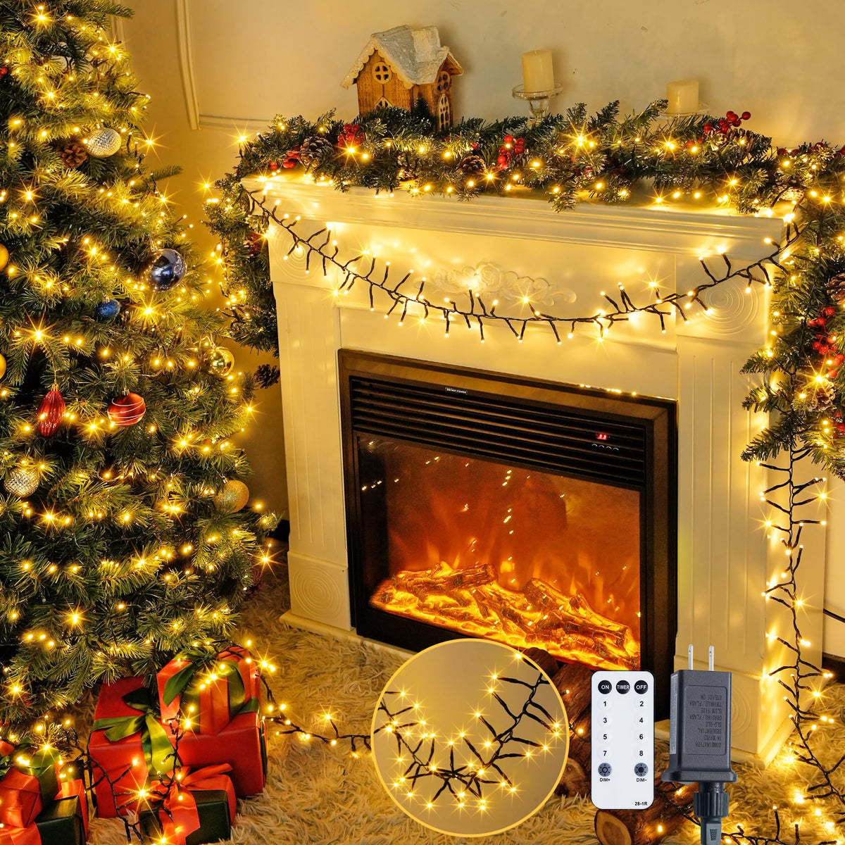 Q: How do I control the lighting modes of these twinkle lights?A: The cluster lights come with a remote control that allows you to easily switch between 8 different lighting modes, adjust brightness, and set timers, providing convenience for creating the desired ambiance.
