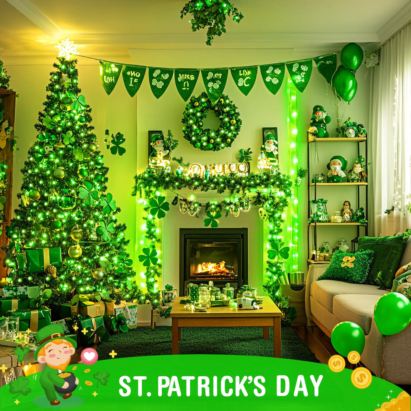 Q: Can these green lights be used for indoor decorations?A: Yes, the JMEXSUSS Green St Patricks Day Lights are perfect for both indoor and outdoor decorations. You can use them to enhance your living space, wrap them around furniture, or create a festive atmosphere for parties.