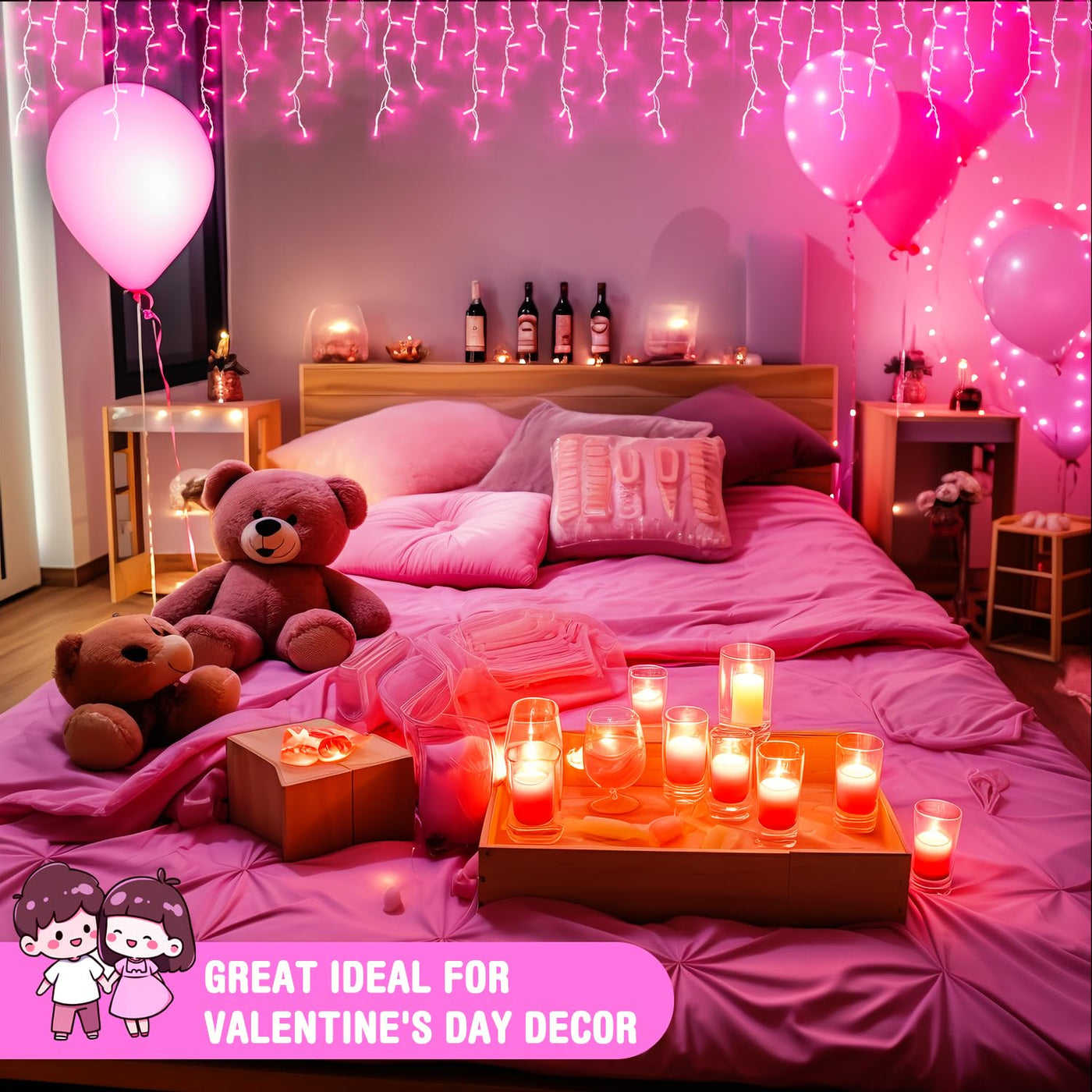 Q: Can these lights be used for occasions other than Valentine's Day?A: Absolutely! The JMEXSUSS Pink Icicle Lights are versatile and suitable for various occasions, including Christmas, birthdays, and Halloween.