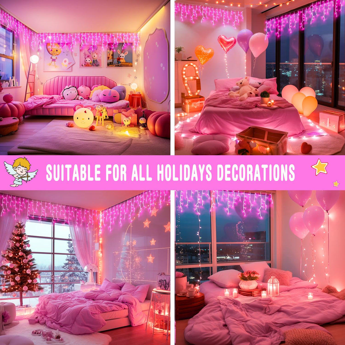 The JMEXSUSS 400 LED Pink Icicle Lights are designed to enhance your decor for various occasions throughout the year. Perfect for creating a cozy atmosphere during Christmas, adding a whimsical touch to Halloween, or brightening up birthday celebrations, these lights are versatile and charming.