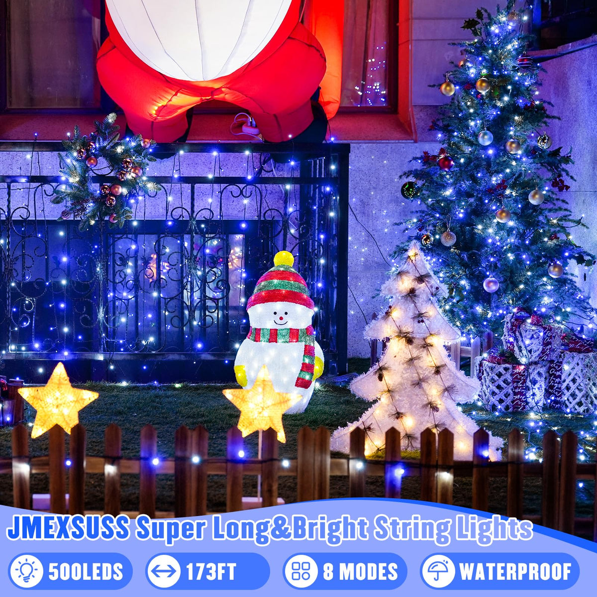 Jmexsuss 500 Led Blue And White String Lights Outdoor, 173Ft 8 Modes Led Christmas Lights Indoor, Waterproof Christmas Twinkle L