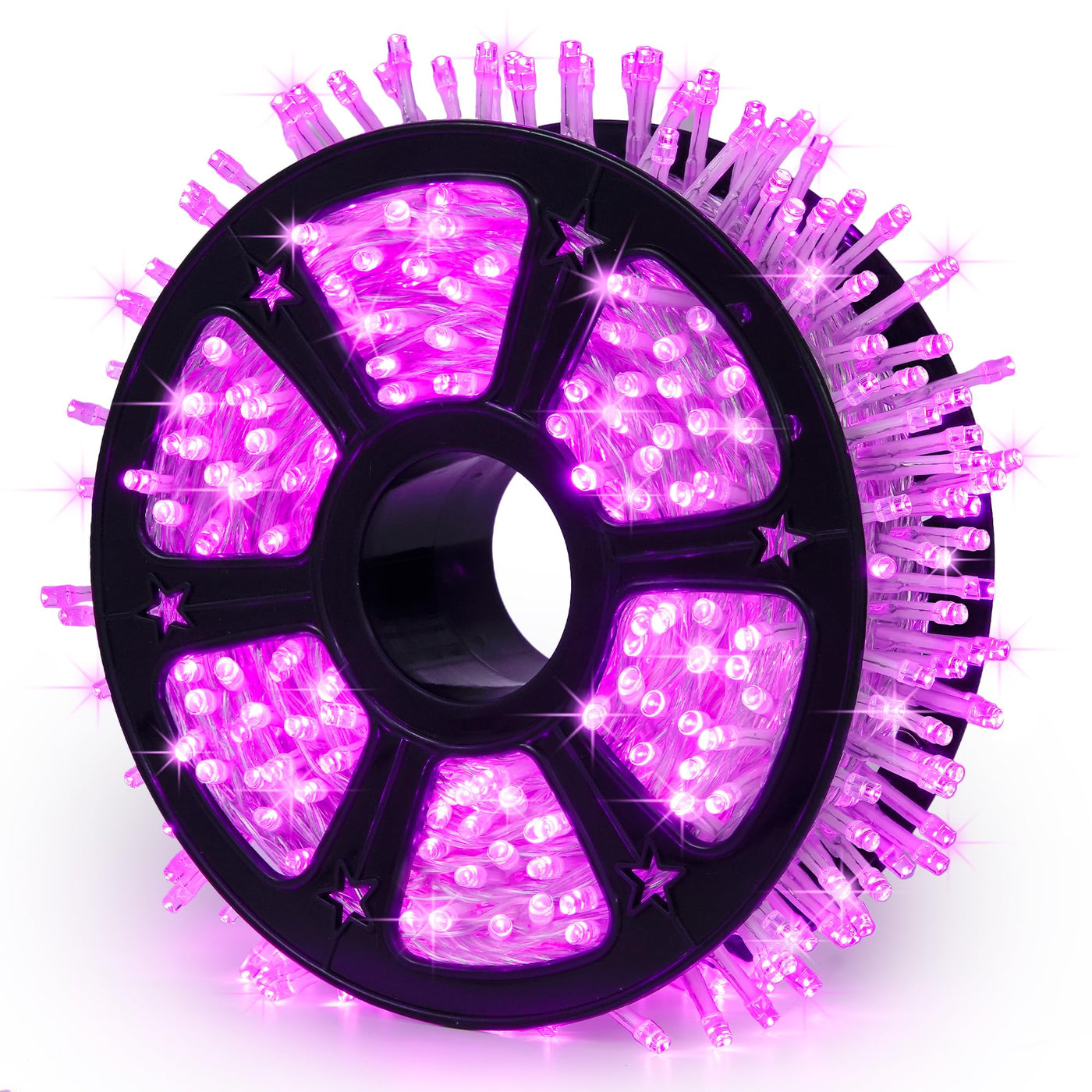 Jmexsuss 500 Led Pink Room Lights, 8 Modes 163Ft Waterproof Pink Christmas Lights Outdoor Plug In With Remote Control, Clear Wir