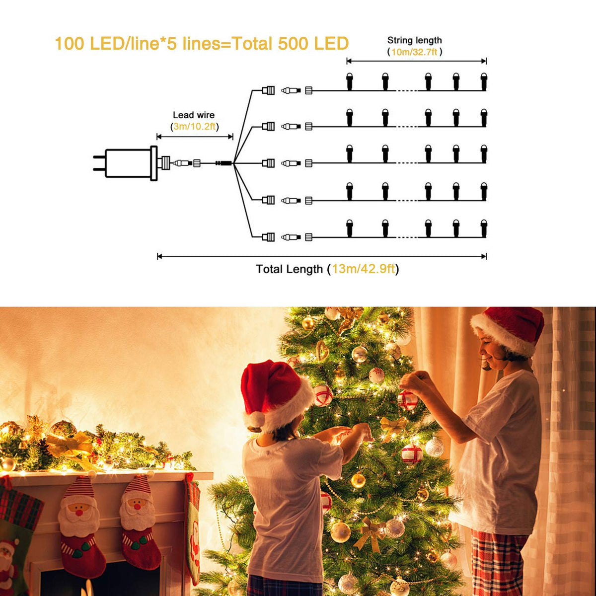Unique Design: 500 LED lights arranged in five directions for easy wrapping.