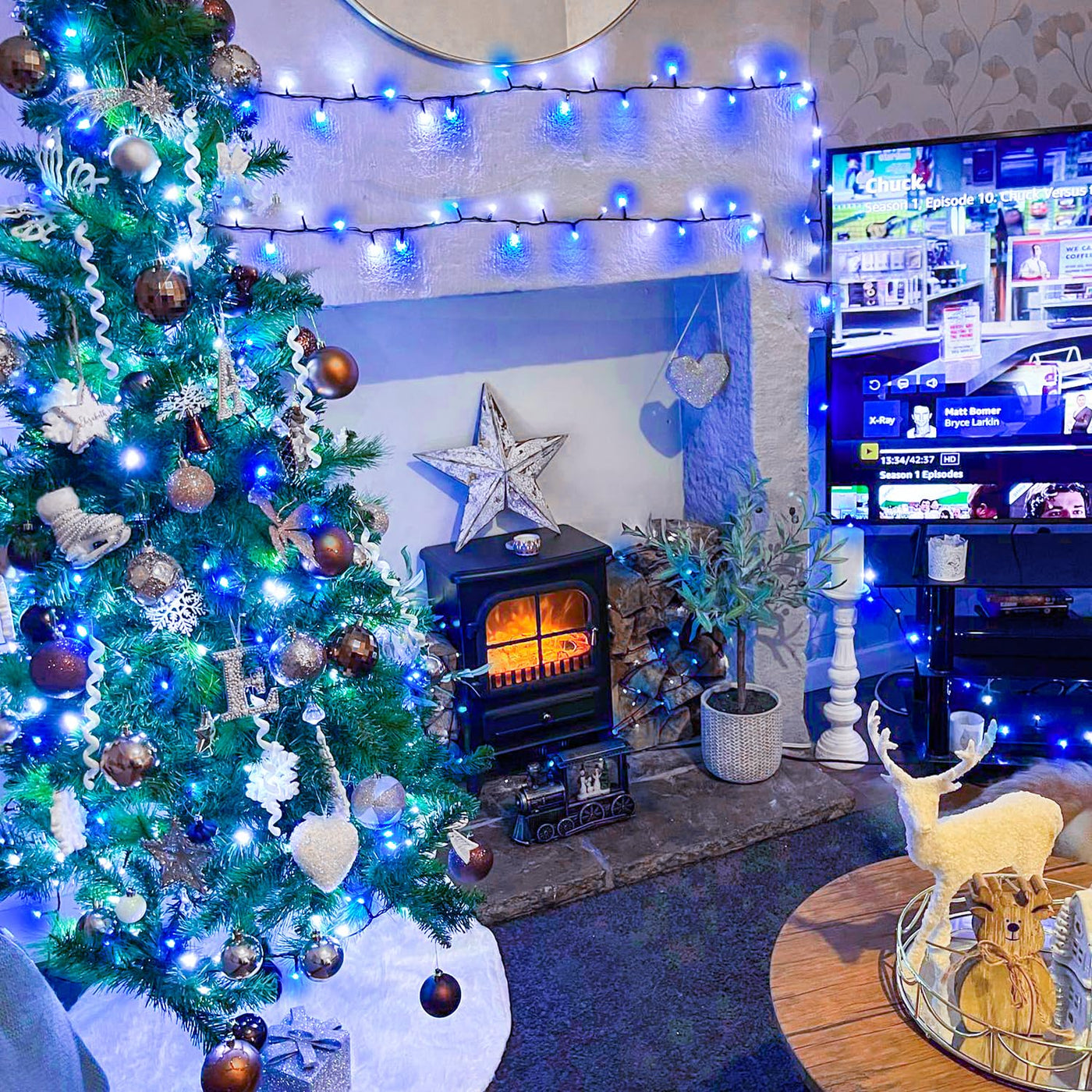 Jmexsuss 66Ft 200 Led Blue And White Christmas Lights, Outdoor Christmas String Lights Plug In, Expandable Christmas Lights For