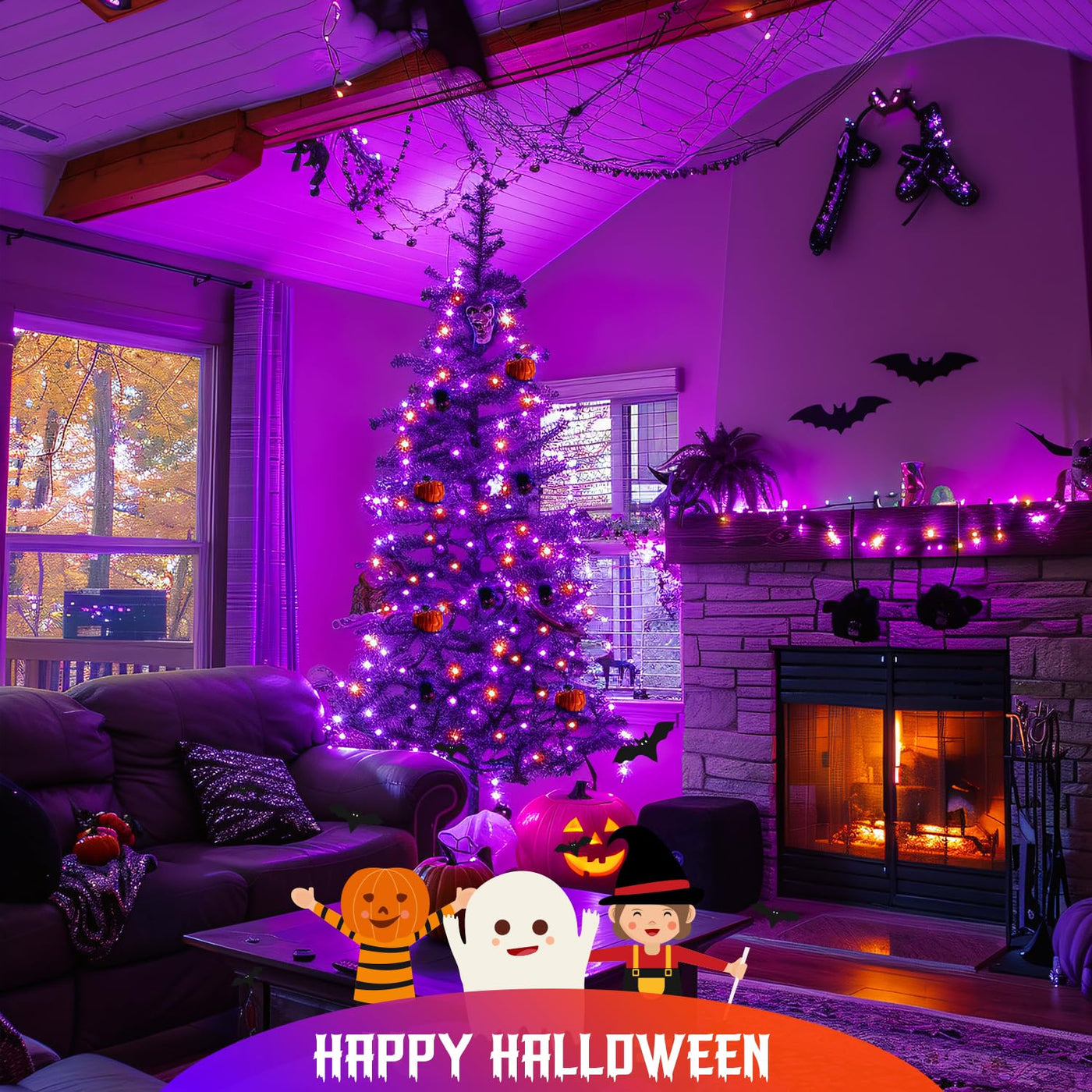 Jmexsuss Orange And Purple Halloween Lights Battery Operated, Each 33 Ft Indoor Halloween Lights Outdoor Waterproof, 2 Pack 100 Led Christmas Lights For Halloween Christmas Tree Decor