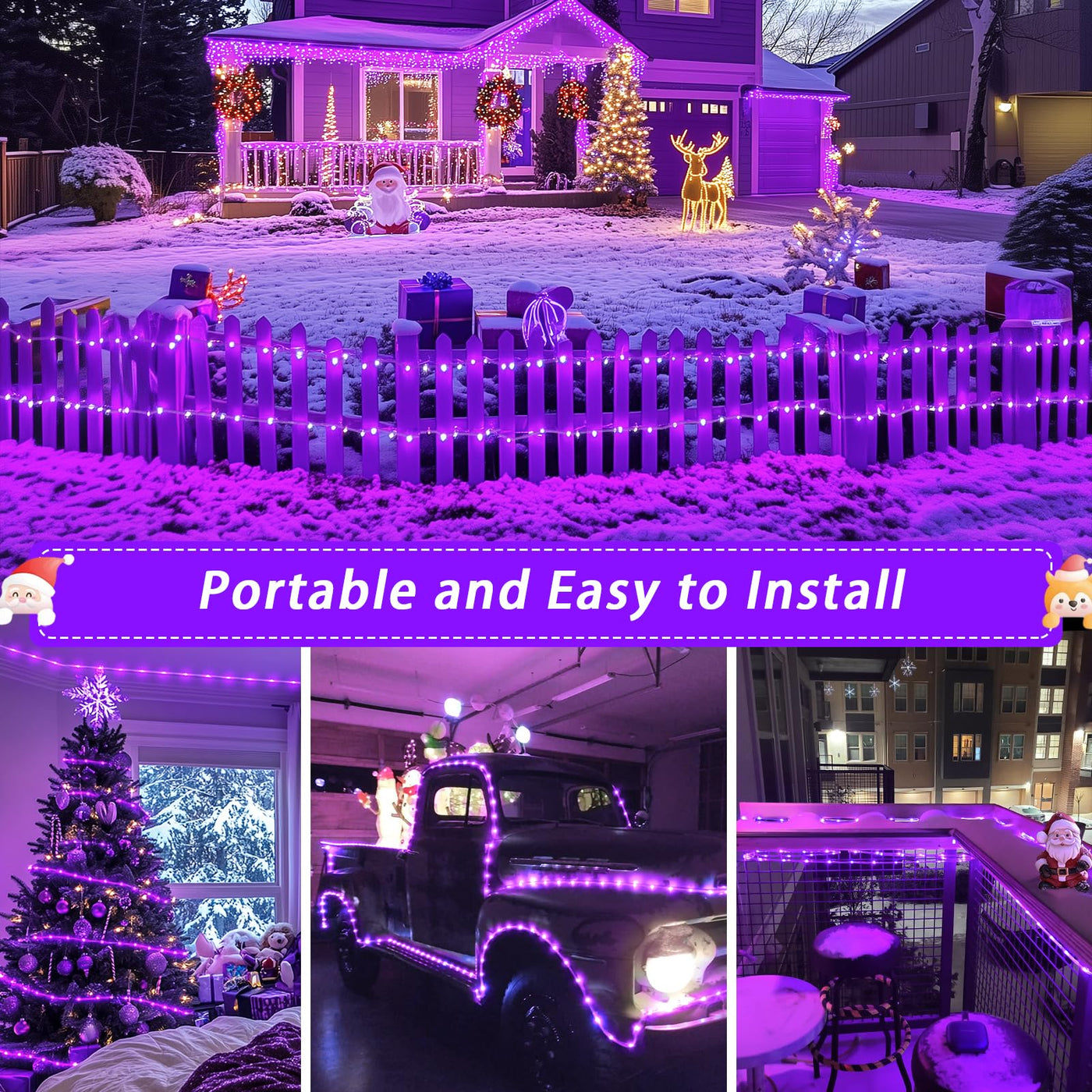 JMEXSUSS Purple Rope Lights, 33 ft Each, 100 LED, Battery Operated, Waterproof, 2 Pack for Outdoor Halloween Decor