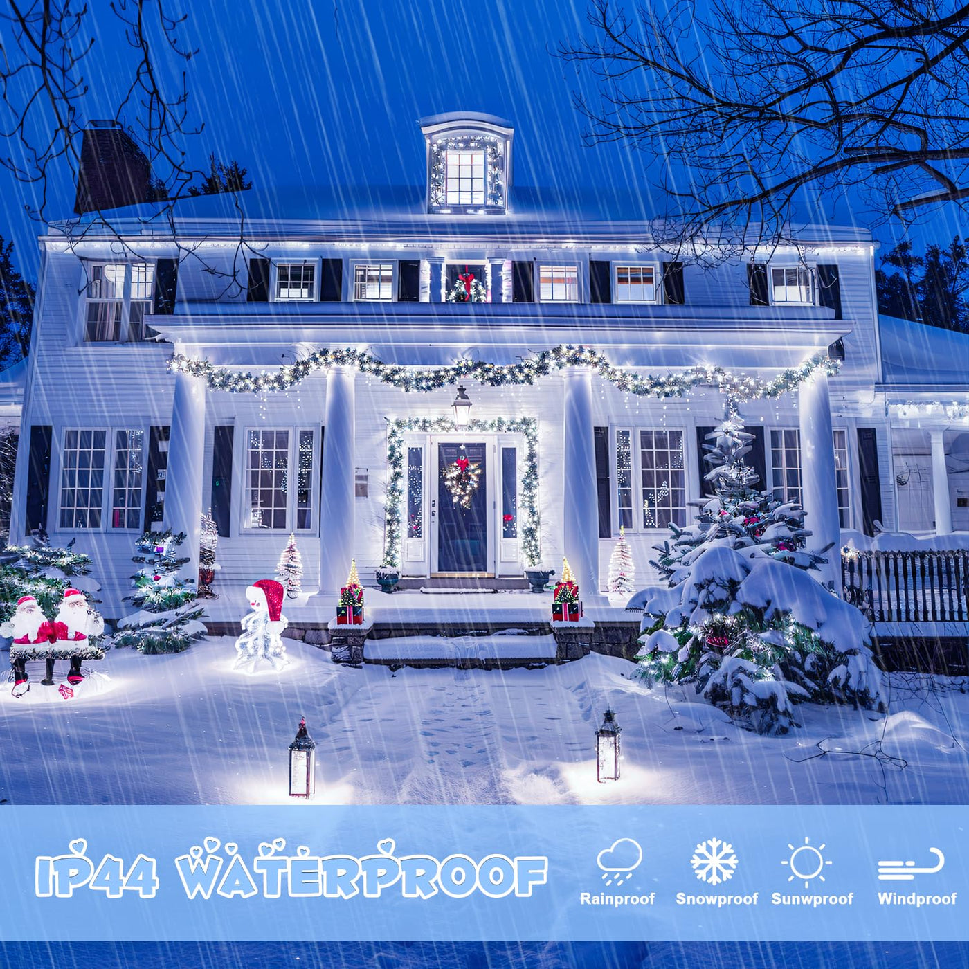 JMEXSUSS White Christmas Lights Outdoor Waterproof, Each 33 FT Battery Operated String Lights with Remote, 2 Pack 100 LED Christ